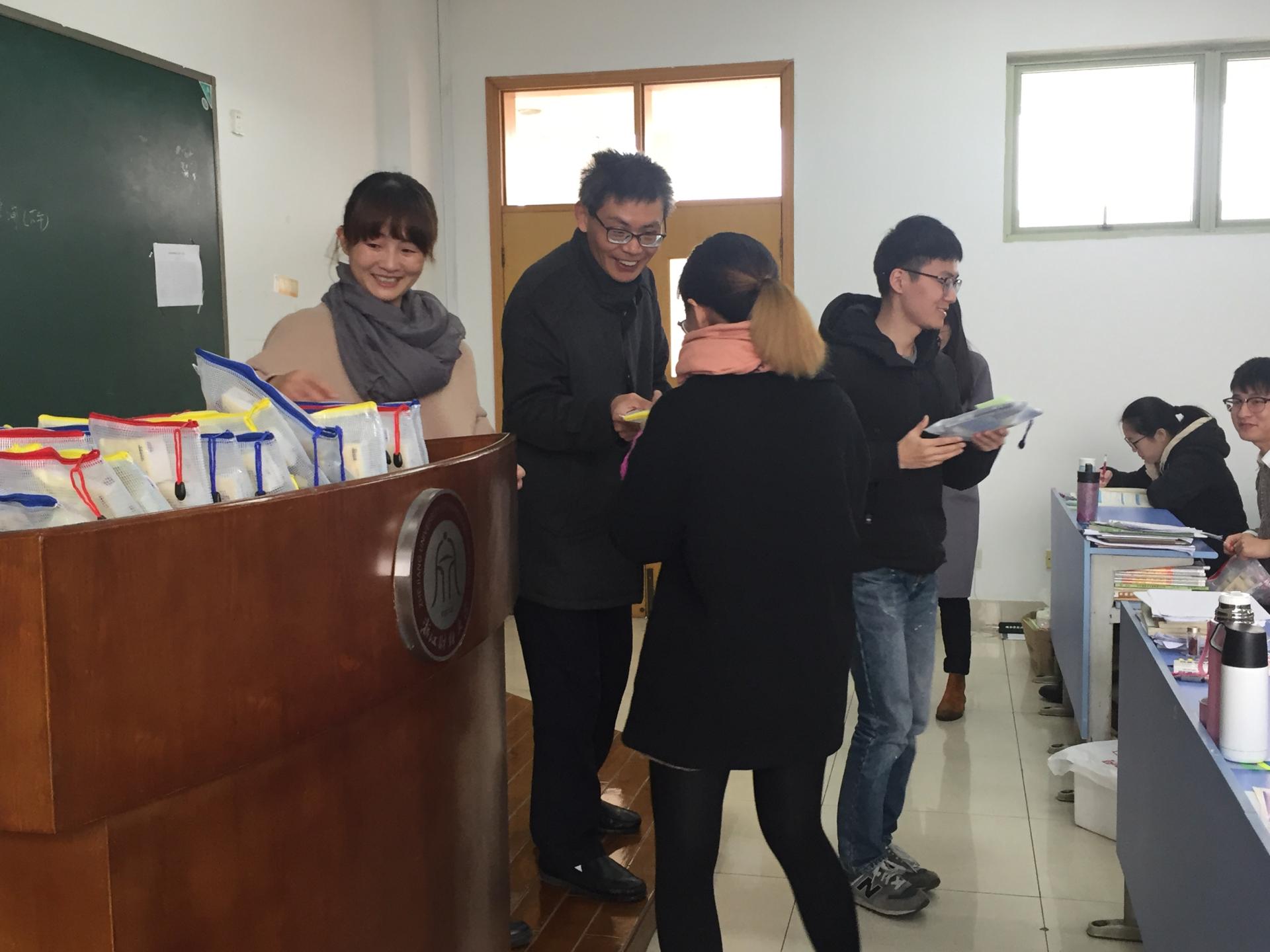 首先,沈水法书记对考研同学提出三点建议:一要坚持不懈,永不放弃;二要调整好心态,以积极、轻松的状态迎接考试;三要注意身体,做到劳逸结合、科学备考。随后,沈水法书记和杨小恩副书记亲自给同学们送上精心准备的“考研加油包”,鼓励同学们以饱满、轻松、平和的心态认真备考,祝福同学们取得好成绩。