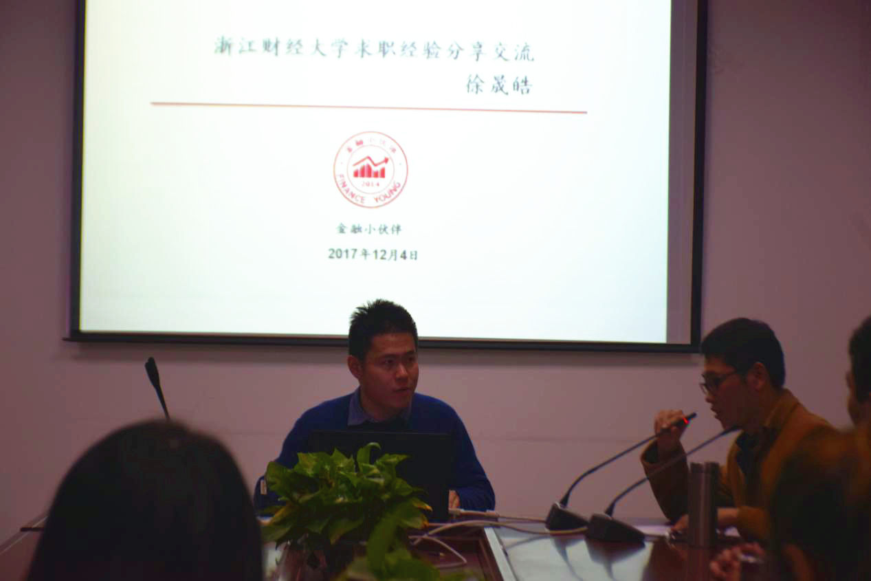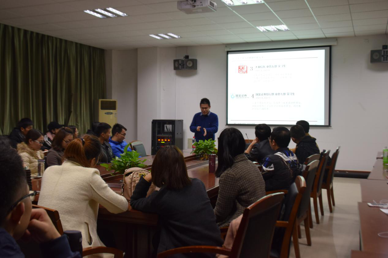 学生介绍金融资管行业现状与前景,并分享了他的实习求职经历。