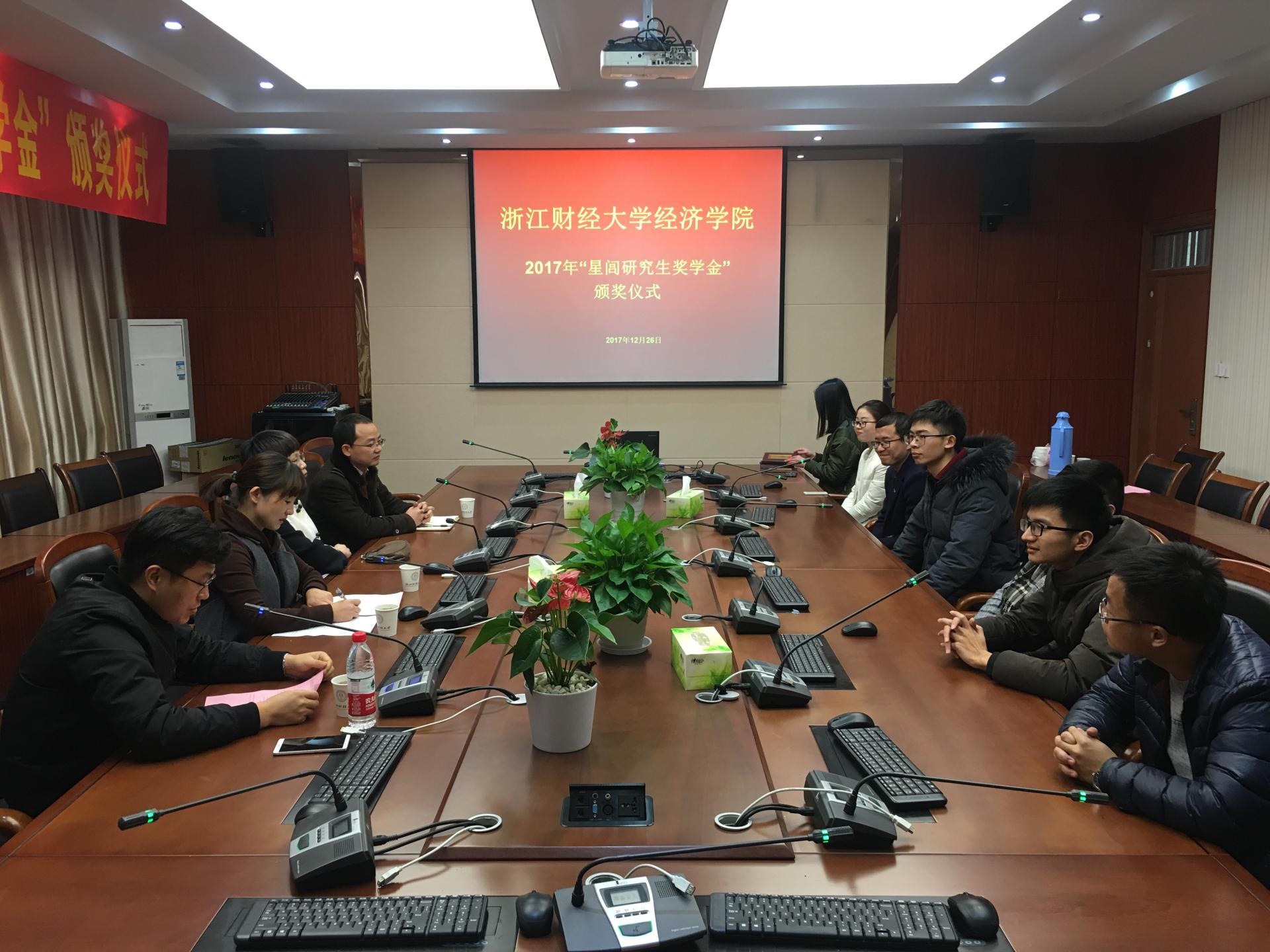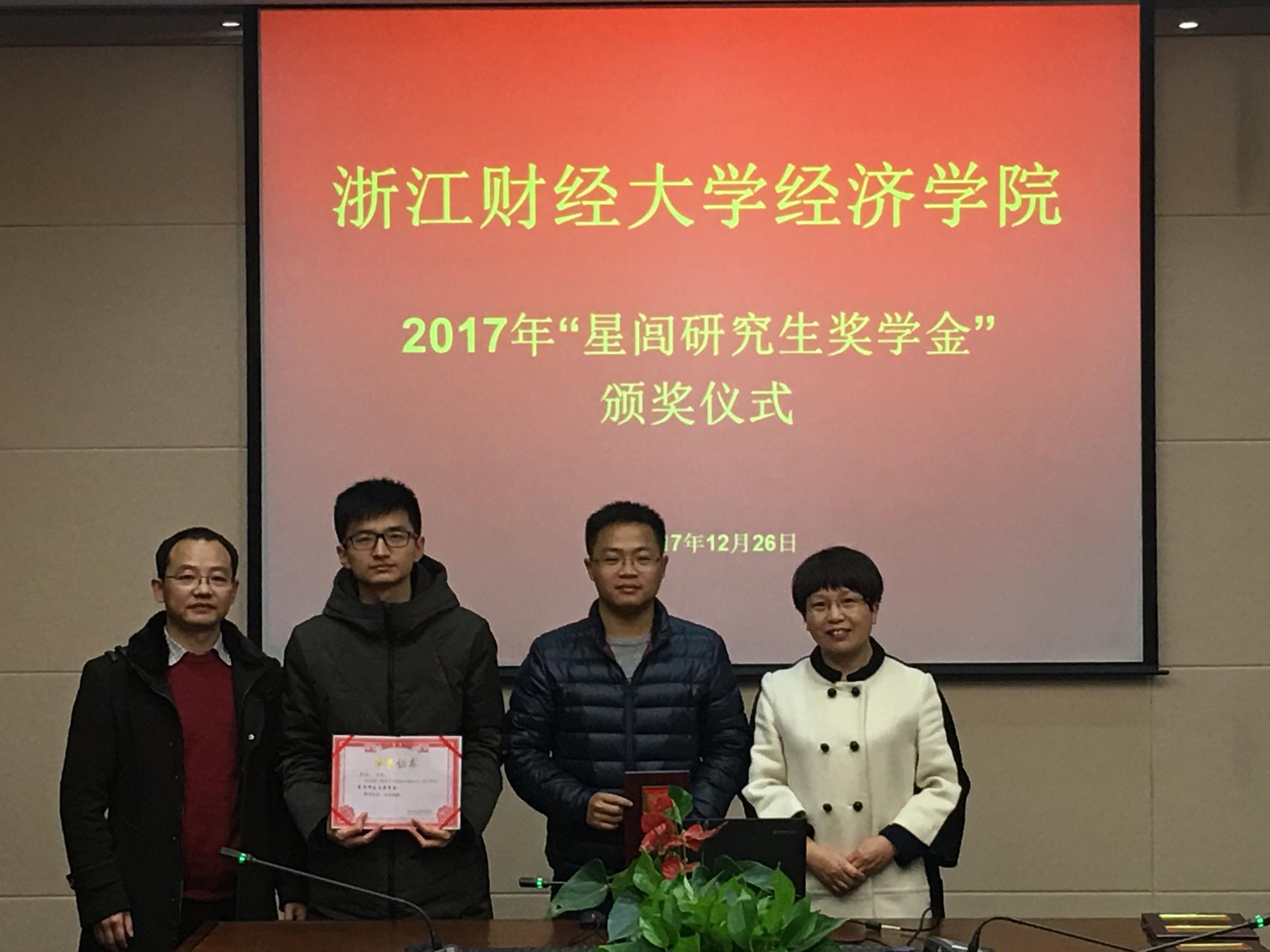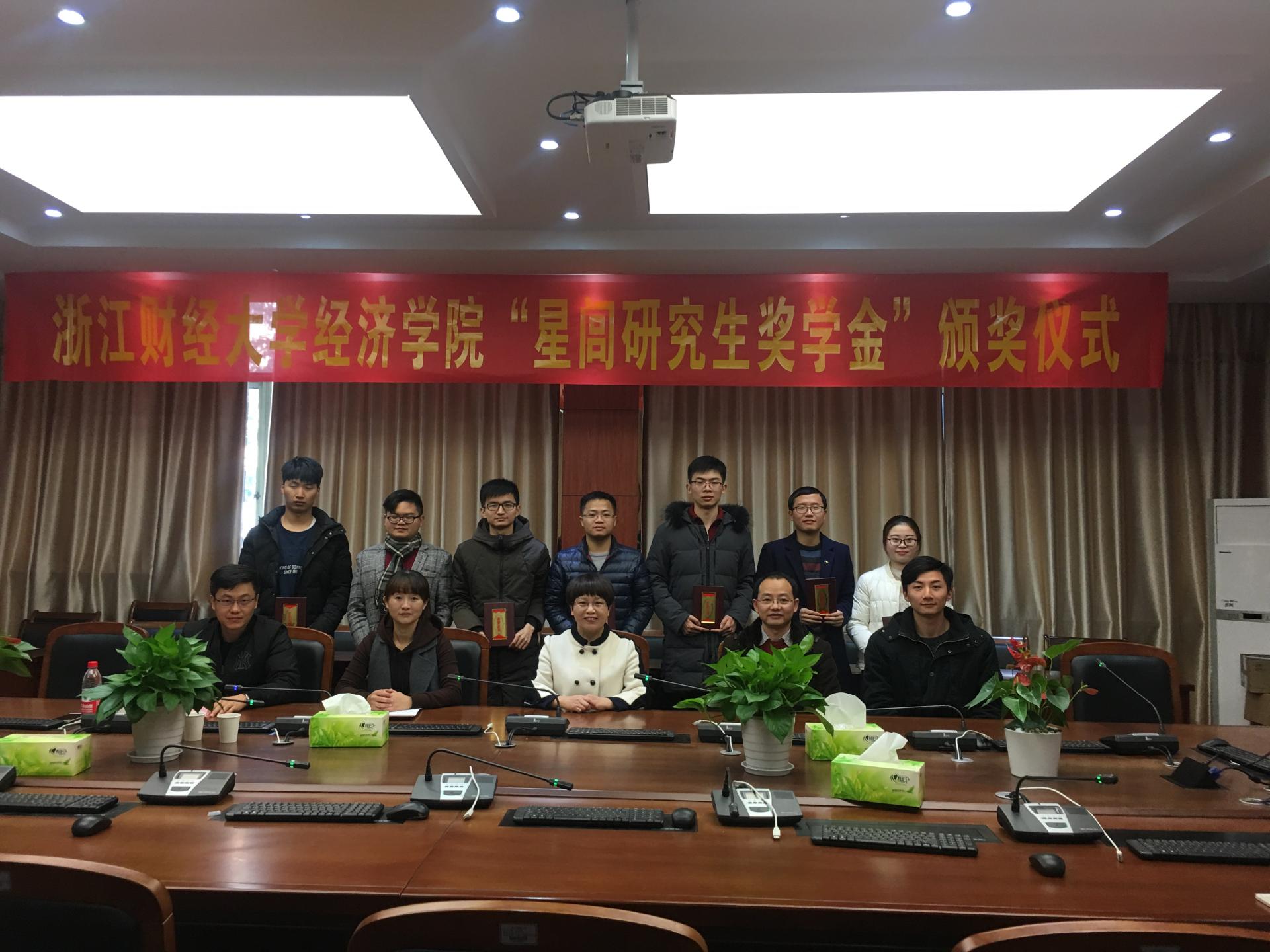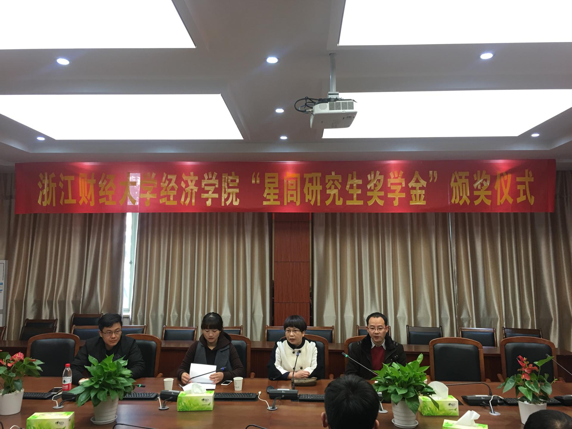第五届“星闾研究生奖学金”颁奖仪式在210会议室举行,胡亦琴院长、柴志贤副院长、王正新副院长及研究生辅导员曹仲晔出席,学院党委副书记杨小恩主持会议。