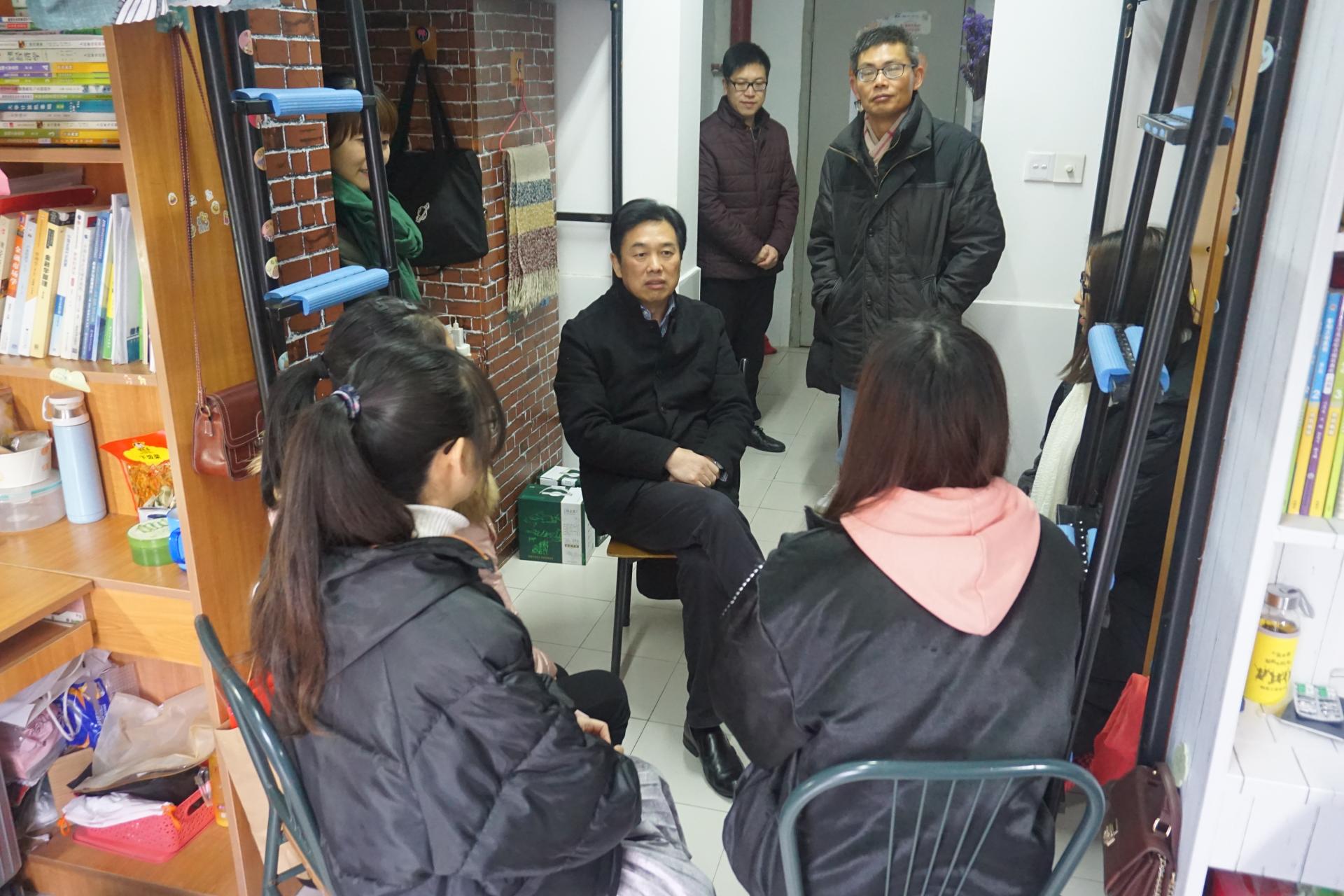 1月5日下午,校纪委书记陈金方在学院党委书记沈书法、副书记杨小恩、辅导员李伶俐、曹仲晔的陪同下走访了学生生活园区5幢416寝室。