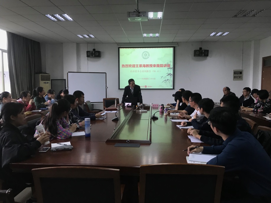 开展了题为“宏观经济学科学体系与流派之争”的专题报告。十多位承担宏观经济学教学任务的教师以及优秀本科生一起聆听了本次报告。