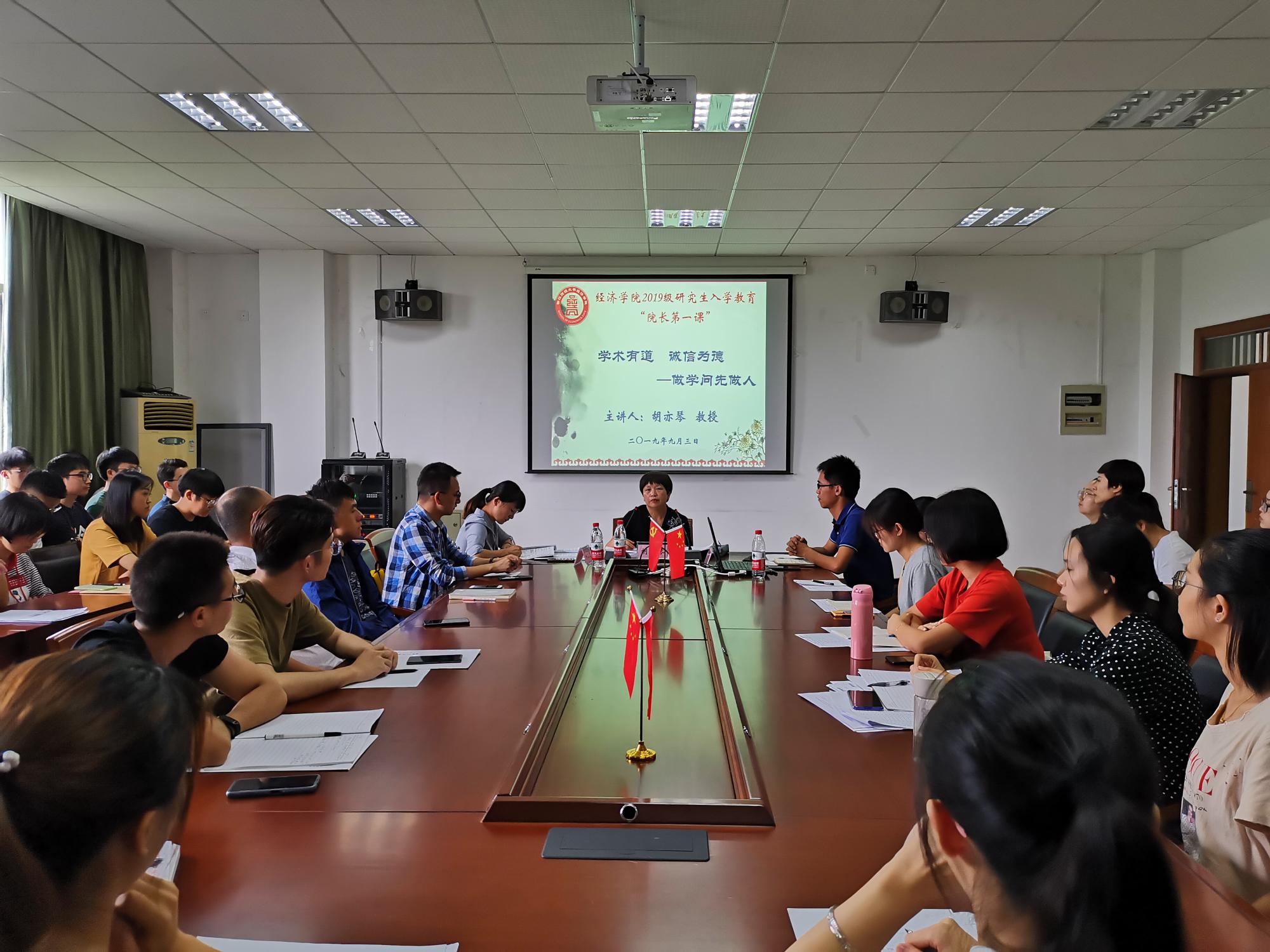 近日,胡亦琴院长以《学术有道,诚信为德--做学问先做人》为题,为2019级研究生讲授“院长第一课”。