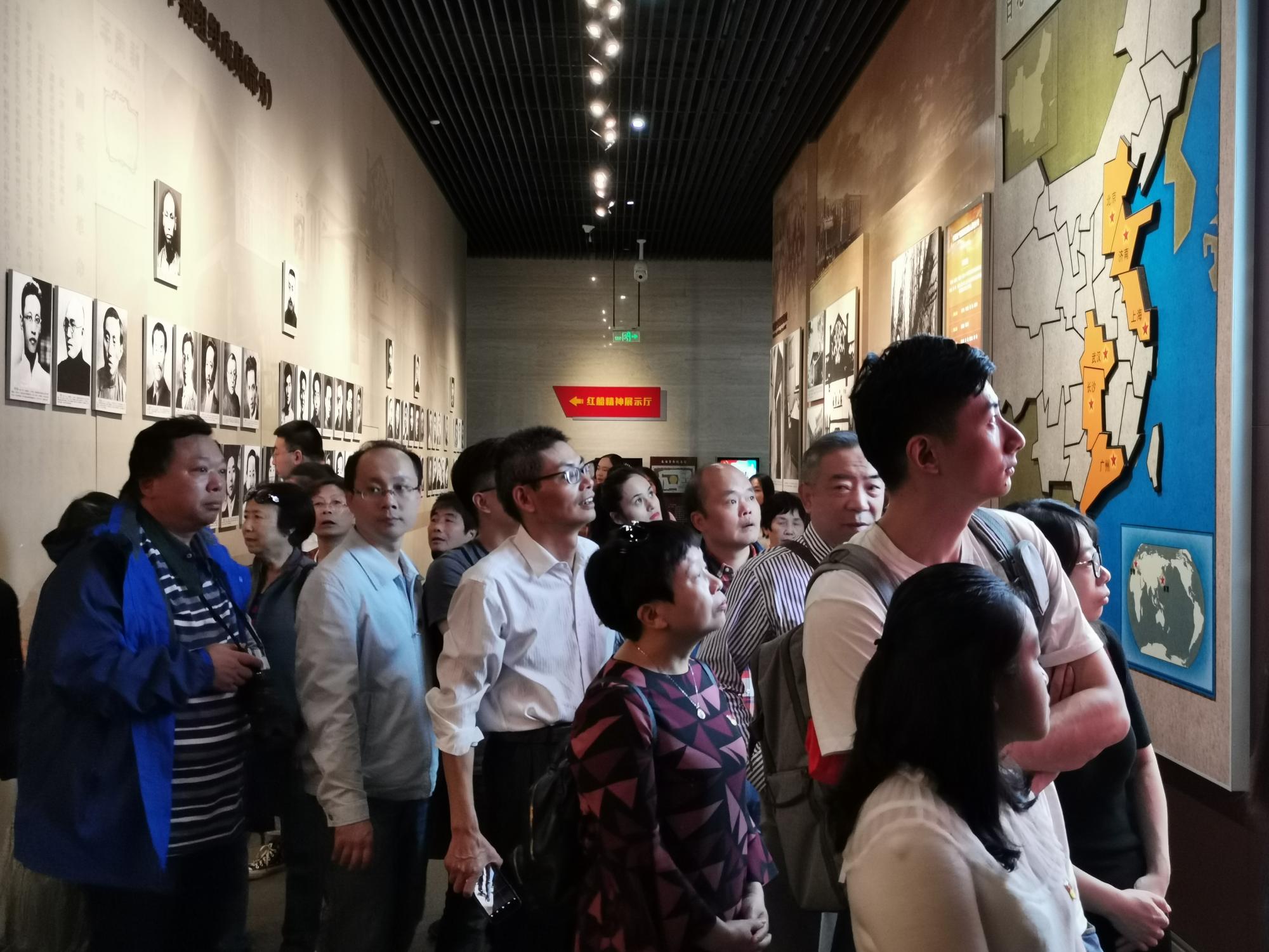 全体党员同志坐船来到南湖红船,党员们行至红船前,驻足瞻仰红船,用心感受“开天辟地、敢为人先的首创精神;坚定理想,百折不挠的奋斗精神;立党为公、忠诚为民的奉献精神”。