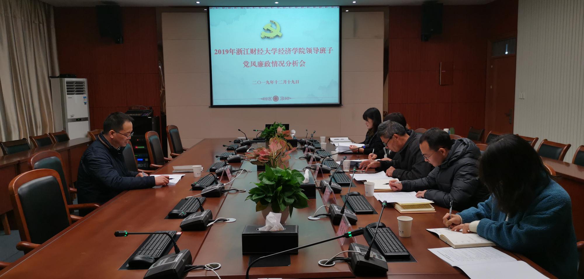 12月19日下午,2019年度学院领导班子党风廉政建设情况分析会在学院楼210会议室举行。校党委副书记余建森、学院领导班子成员、办公室主任、学办主任参加会议。会议由学院党委书记沈水法主持。
