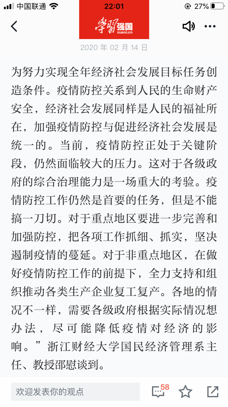 在疫情当下,教工第一支部党员邵慰教授充分发挥学科优势,积极建言献策,在人民网文章《工作越吃劲越要毫不放松 习近平强调抓实抓细抓落地》中指出“加强疫情防控与促进经济社会发展是统一的”,为社会各界疫情防控及完善相关政策提供参考。随着学校正式线上开课,成人直播