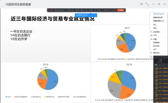 通过线上直播召开了2018级国际经济与贸易专业年级大会。本次活动由国际与贸易专业主任吴宏老师主持,并特别邀请陈佳瑜学姐与王子晨学长分别从考研和就业两个方面给同学们分享经验。