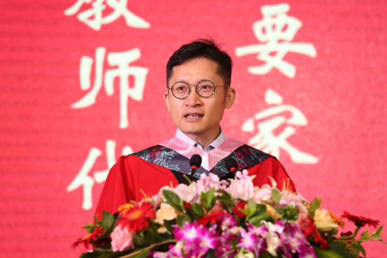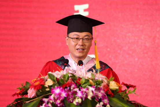 紧接着,学院院长王正新老师发表了讲话,面对即将远行的学子,他深情地与大家分享了三点期许:第一,坚守初心,保持乐观,克服焦躁;第二,永远在奋斗的道路上前行,毕业是终身学习的开始;第三,心怀家国,投身于中国梦的建设之中,并在最后祝福同学们前程似锦,未来可期。