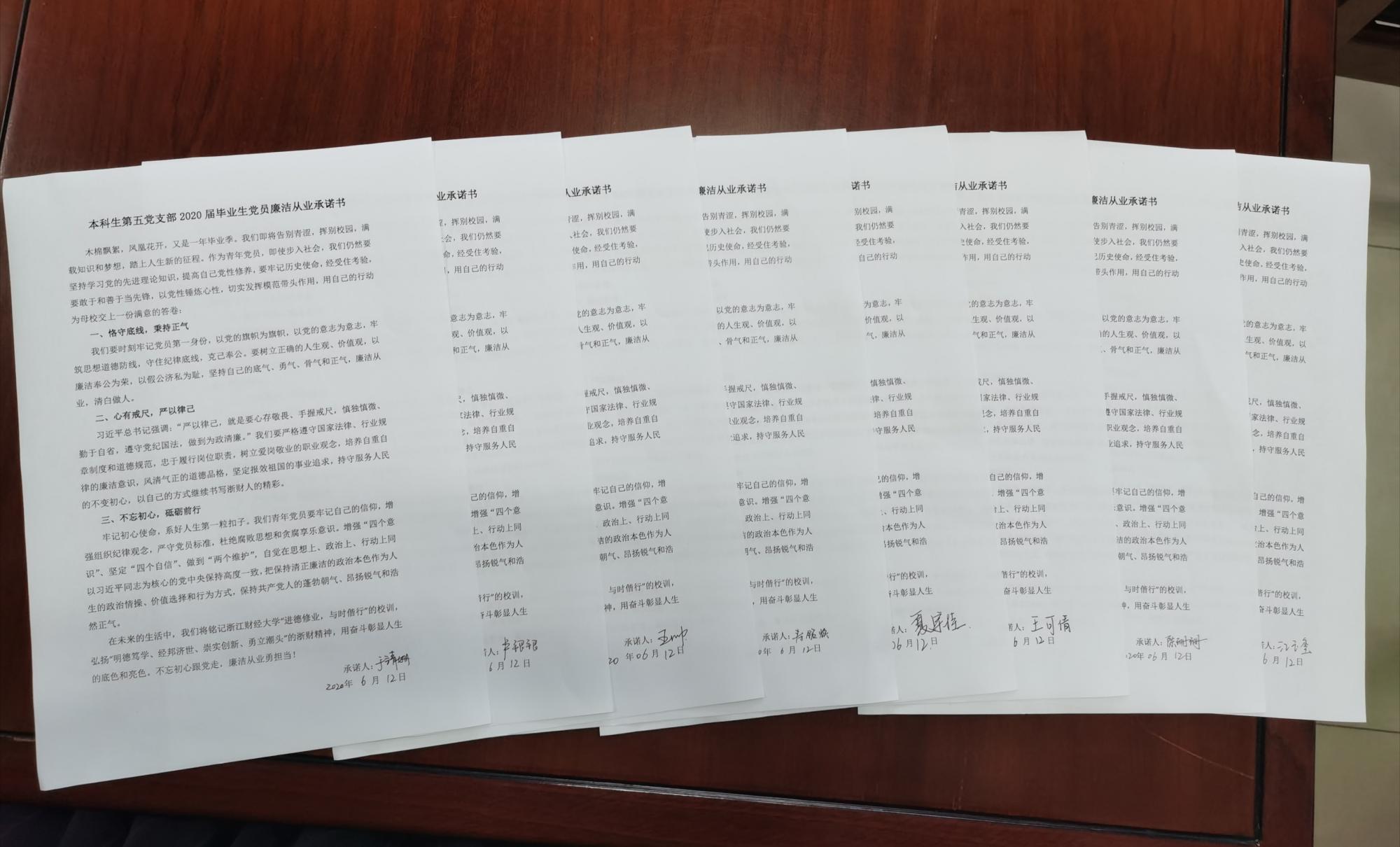 各学生党支部举行毕业生廉洁从业座谈会。本科生第五党支部书记曹仲晔老师从认识反腐败斗争的新形势、腐败出现的原因和防范措施、学习廉洁法律法规以及增强党员拒腐防变的能力等四个角度,深入解释了“廉洁从业”这一主题的内涵。党员们表示要时刻保持一种淡泊宁静的心理状态,剔除名利思想和追求物质享受的观念,自重、自省、自警、自励,常修为政之德,常思贪欲之害,常怀律己之心,真正做到清清白白、堂堂正正做人,干干净净做事,树立党员干部的良好形象。