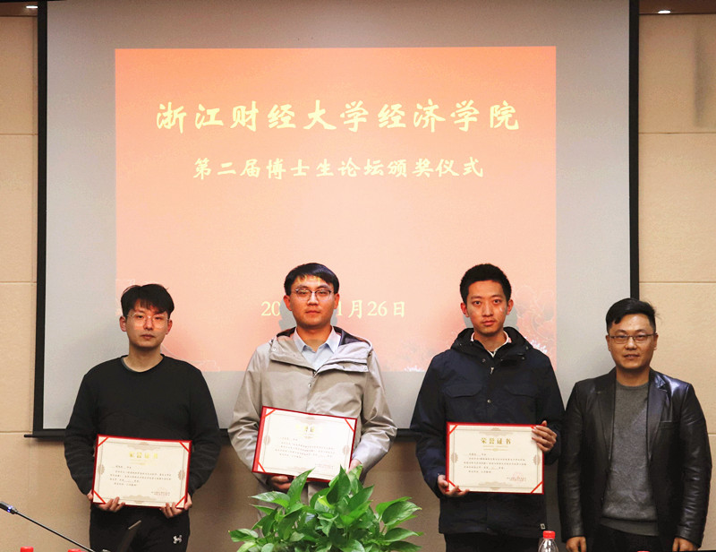 )、周梓洵(北京大学)、徐腾达(中国人民大学)、胡稳权(浙江大学)、付嘉为(东北财经大学)、方云龙(天津财经大学)颁奖并合影留念。