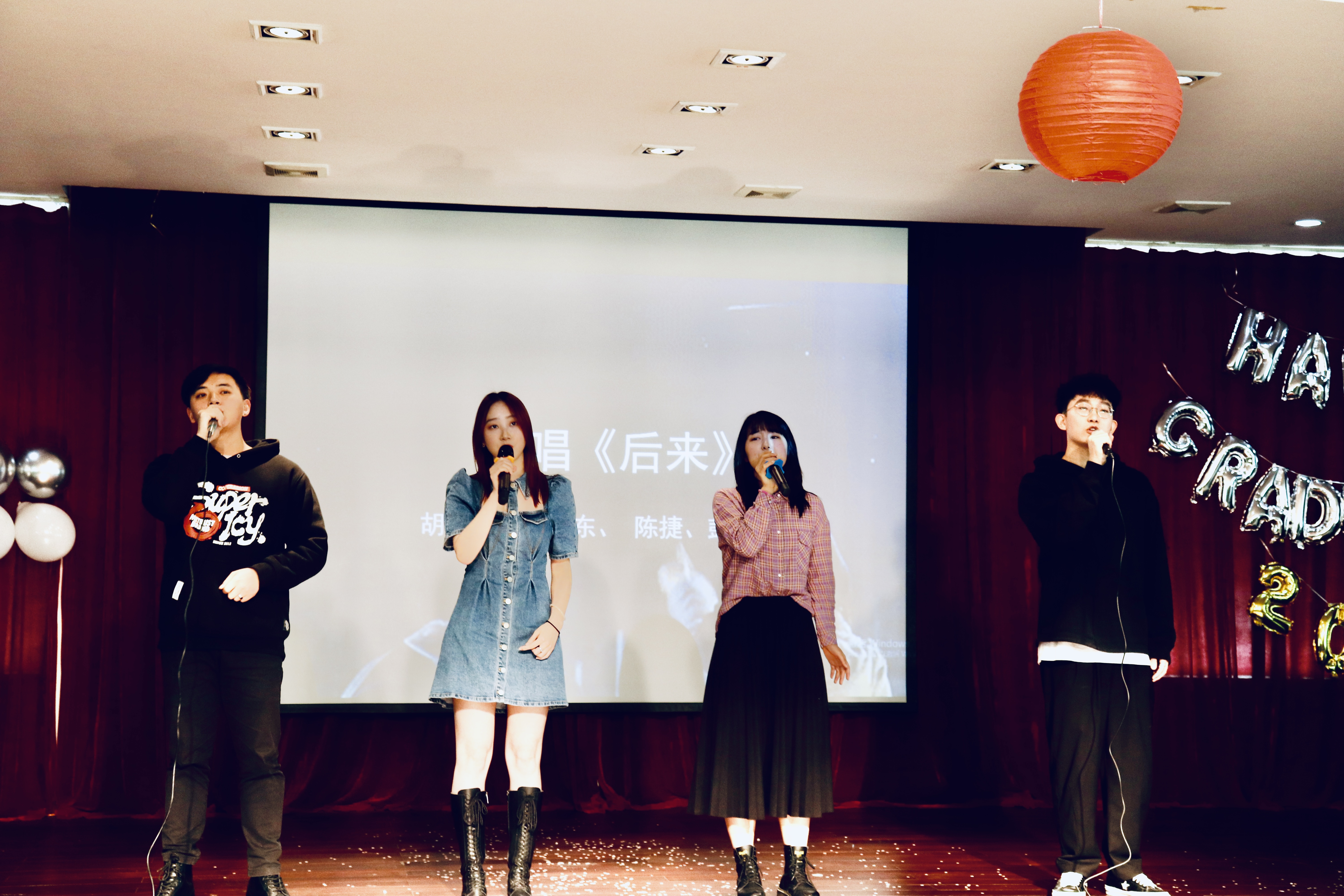 院研究生会的《毕业惊喜》小品融入了同学们的大学生活,表达了对爱情和友情的珍惜,真诚恳切。舞台剧《我不想毕业》,圈圈年轮,历历足迹,唱响青春之歌,放飞纸飞机,将晚会推向了高潮。晚会中增加了游戏互动环节。最后,伴随着合唱歌曲《后来》,本次毕业生晚会圆满落下了帷幕。