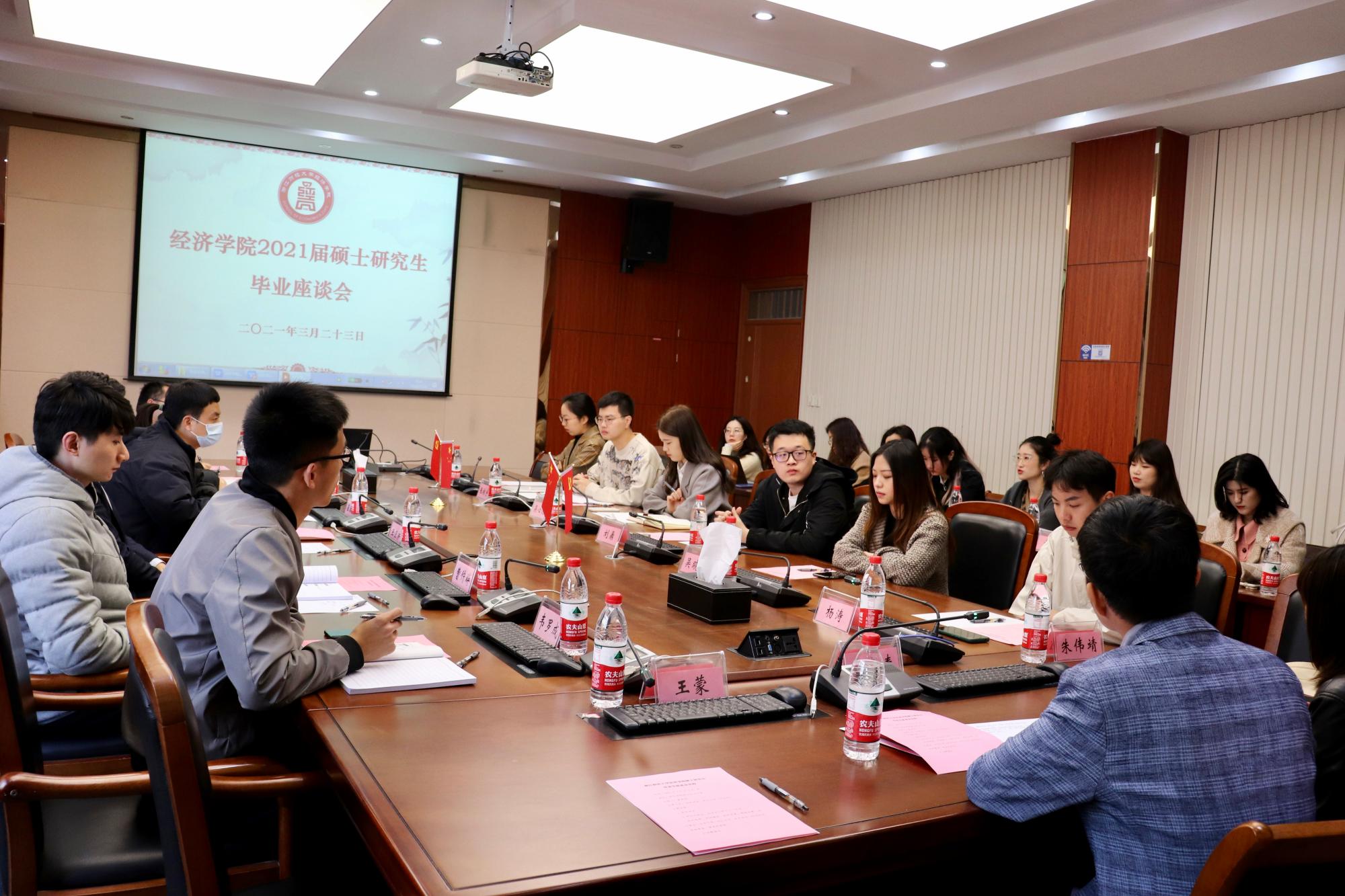 3月23日上午,学院在210会议室召开2021届硕士研究生毕业生座谈会。学院院长王正新、党副委书记崔泰铭、团委书记曹仲晔以及辅导员韦罗成、俞一献、陈秋涵出席会议,14名硕士毕业生代表参加会议。