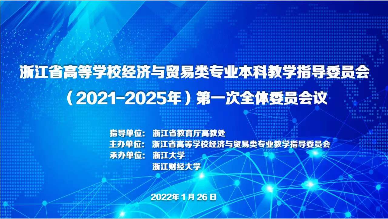 2022年1月26日,浙江省高等学校经济与贸易类专业教学指导委员会(2021-2025)第一次全体会议以线上的形式顺利召开。本次大会的指导单位为浙江省教育厅高教处,由浙江省高等学校经济与贸易类专业教学指导委员会主办,浙江大学与成人直播