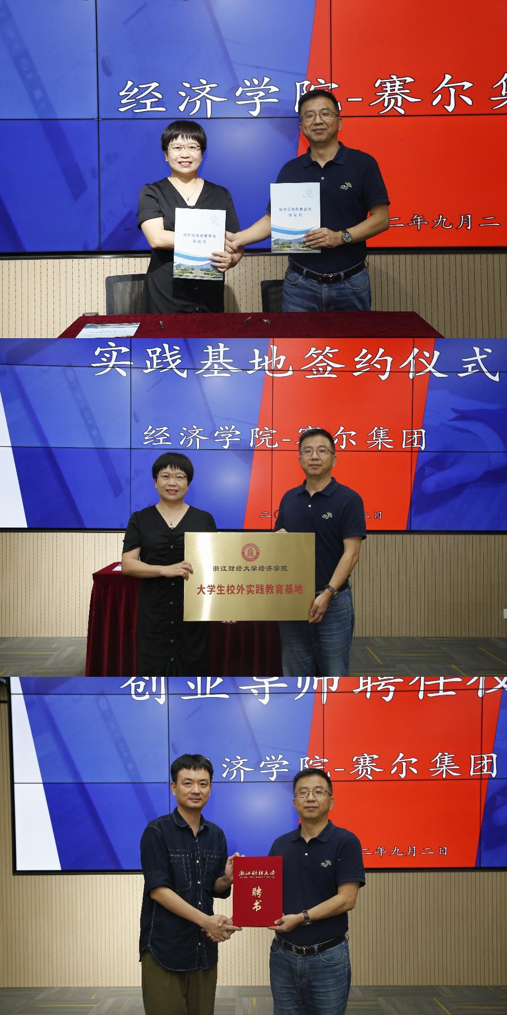 方永强与胡亦琴代表双方签署实践基地合作协议,并为实践基地授牌。崔泰铭为宁波赛尔集团副总裁方永强颁发成人直播