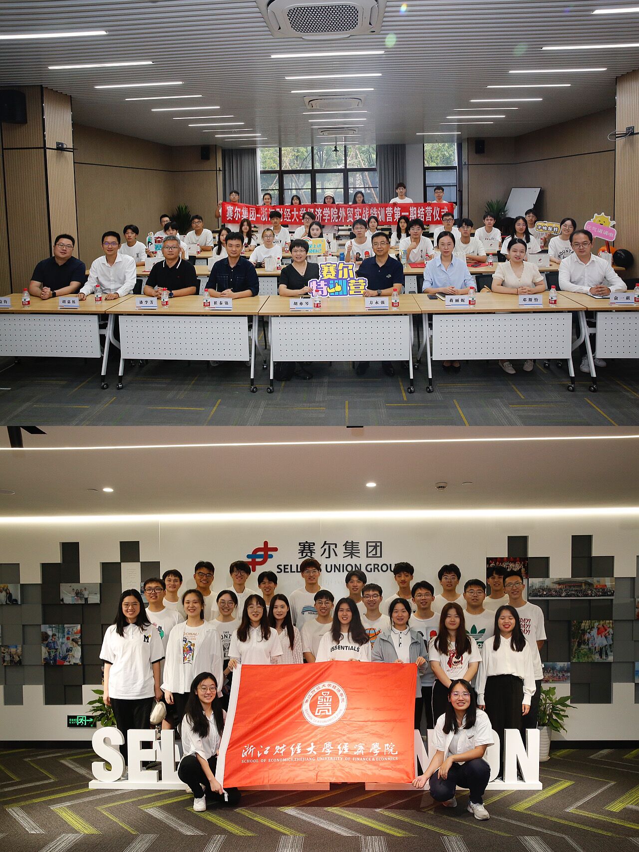 与宁波赛尔集团举行实践基地签约授牌仪式暨首届“赛尔外贸实战特训营”结营仪式。宁波赛尔集团副总裁方永强、招聘经理蒋丽妮、学院党委书记胡亦琴、副书记崔泰铭,及特训营工作人员、学院教师代表、宁波地区校友代表、特训营学员代表共同出席仪式。
