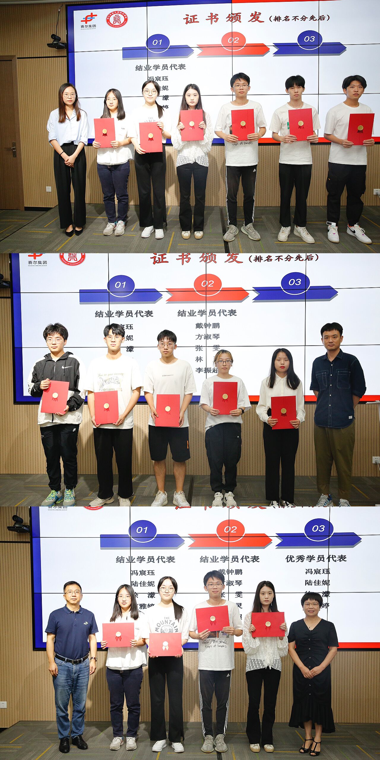 随后,举行了首届“赛尔外贸实战特训营”结业仪式。蒋丽妮、崔泰铭为学员代表颁发结业证书,方永强、胡亦琴为优秀学员代表颁发荣誉奖状。学生代表何雅婷发表讲话,真诚分享课程收获,并鼓励学院同学珍惜机会,积极参与专业实务学习。蒋丽妮为同学们讲解了赛尔集团通用素质地图,围绕提升就业竞争力必备的六种核心素质进行了细致讲解。