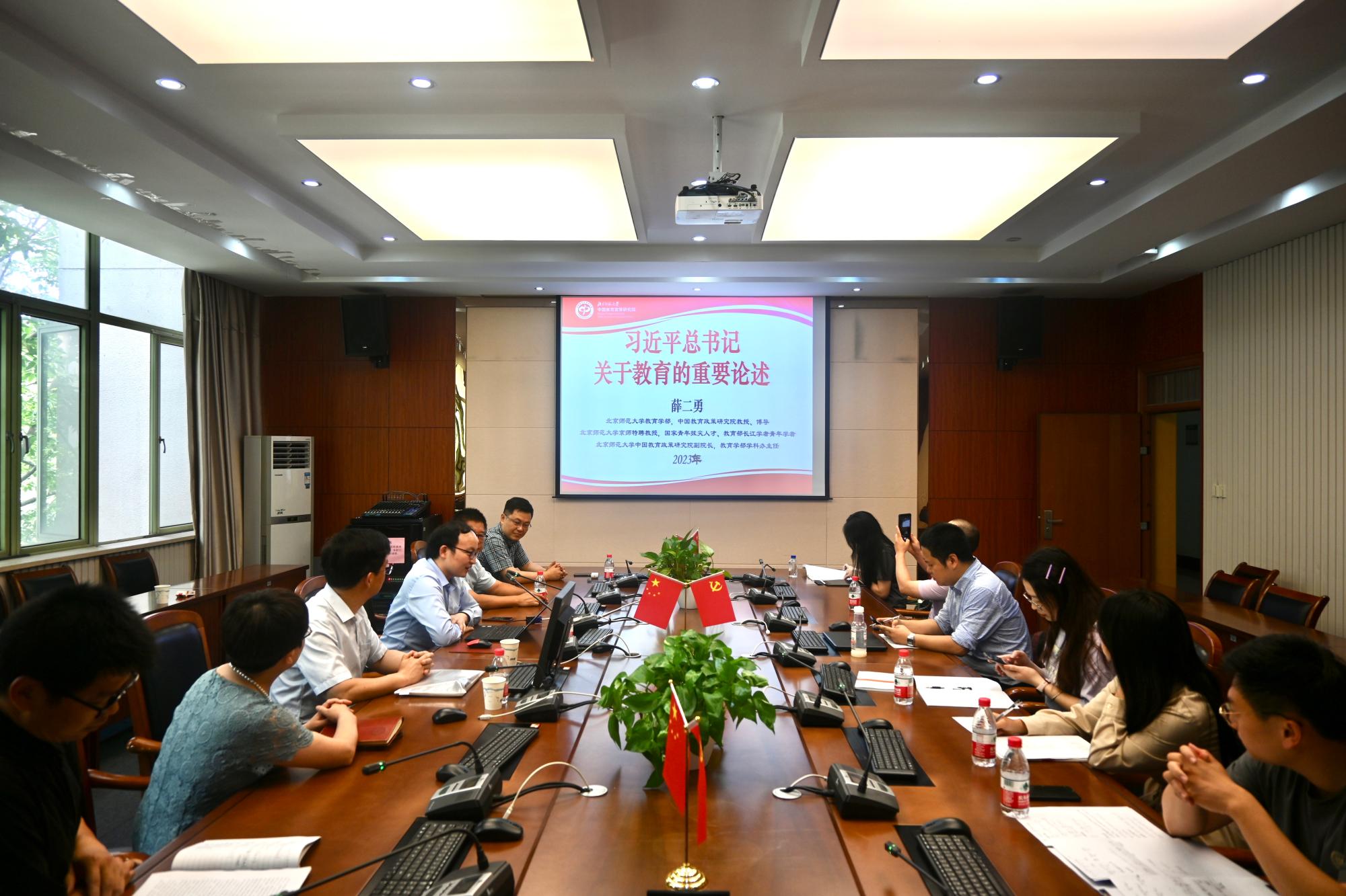 薛二勇从“什么是教育?”这个问题引出了教育的本质,进而从教育的本质出发,把教育的基本活动划分为“培养什么人、怎样培养人、谁来培养人、为谁培养人”,这是教育的根本问题,也是习近平总书记的重要教育论述研究的主要内容。薛二勇强调,本次学习既是习近平总书记关于教育的重要论述的理论学习,也是教育理论运用于教育战略、政策与实践的学习。学校作为育人的主体之一,要与家庭、社会、政府合力,形成全员、全过程、全方位育人的格局,构建良性教育生态。学校在怎样培养人的过程中,要做到九个坚持、三项改革、六个下功夫,要致力于培养拥护中国共产党和我国社会主义制度、立志为中国特色社会主义奋斗终身的有用人才。
