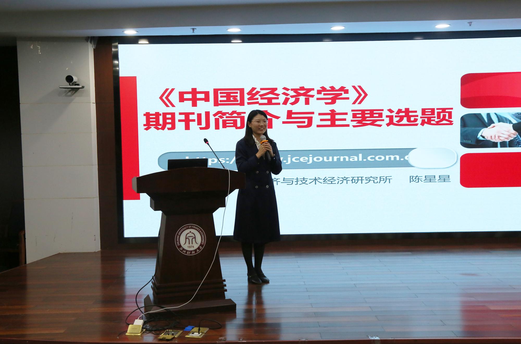 在期刊交流会上,《新华文摘》编审李朱细致剖析了哲学社会科学期刊的编辑导向与相关要求;《数量经济技术经济研究》《中国经济学》编辑部两位副主任焦云霞、陈星星,《财经论丛》编审赵婧分别对各期刊进行了介绍,梳理了审稿流程及注意事项,为作者了解期刊发表详情、提高论文质量提供了诸多有益建议。