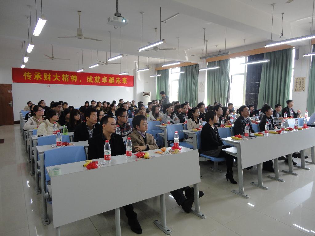 院长谢作诗,党总支书记胡亦琴,副院长崔大树、邱风,硕士生导师代表、学院2013届毕业生以及部分11级和12级研究生齐聚一堂,举行了以“传承财大精神,成就卓越未来”为主题的茶话会。