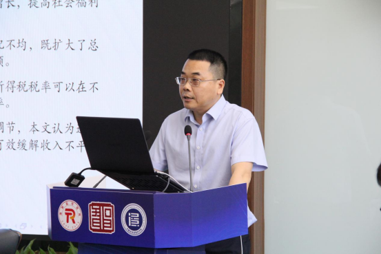 潘士远教授作“中国专利制度的经济增长和收入分配效应:理论分析与现实特征”主旨报告。他指出,鉴于专利政策难以直接接针对收入分配进行调节,可以通过调节税率,以税收的方式推进二次分配可以有效缓解收入不平等的状况,尽力达成效率与公平的兼顾。