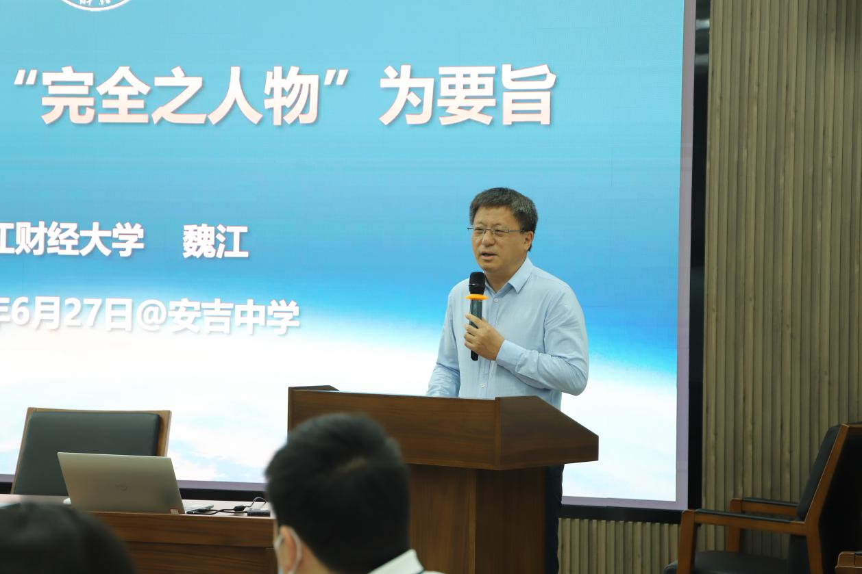 魏江校长以《教育应以培养“完全的人物”为要旨》为题,为高三学生及家长作专题讲座。他从“什么是‘完全的人物’——他心目中成人直播