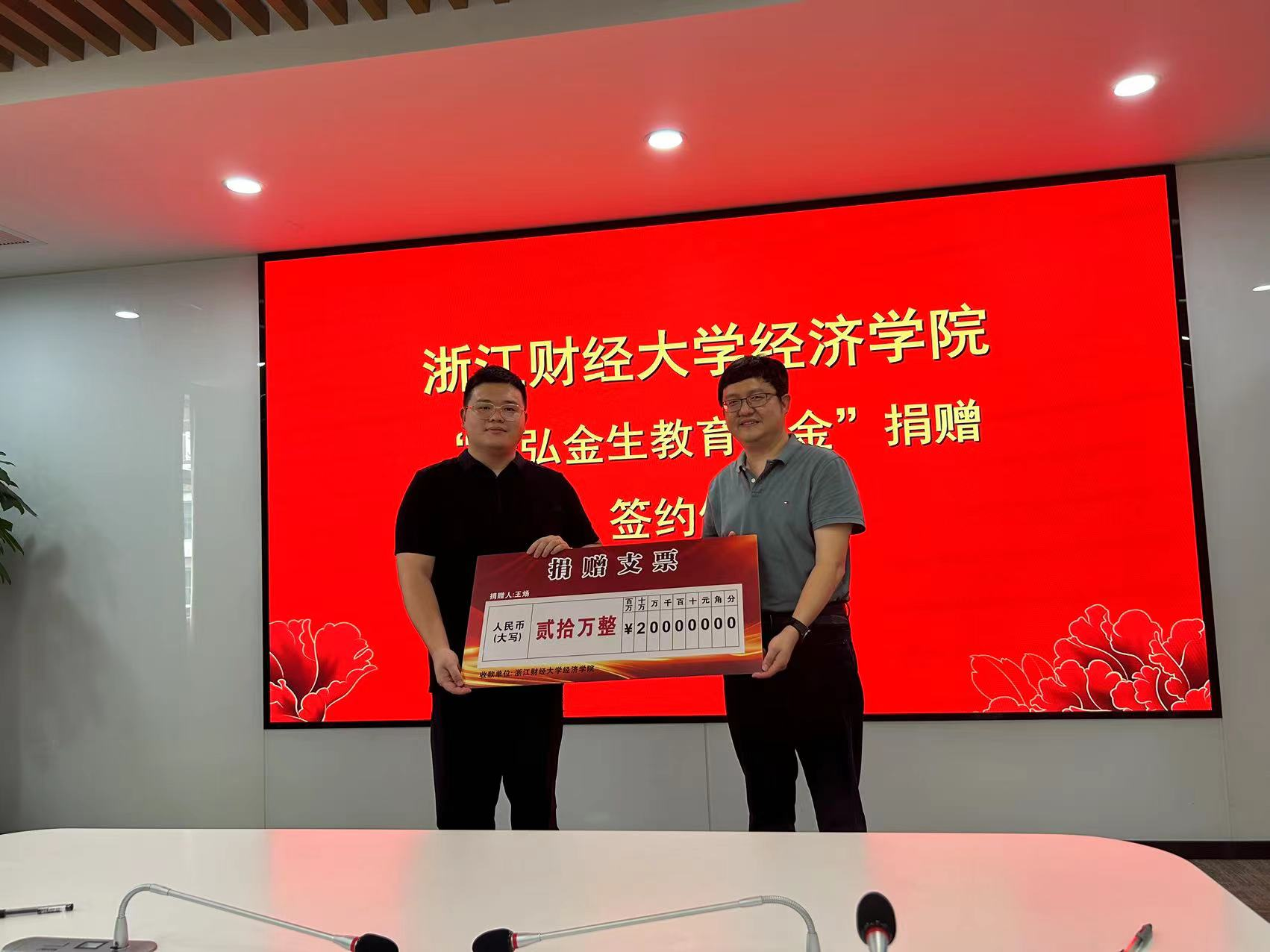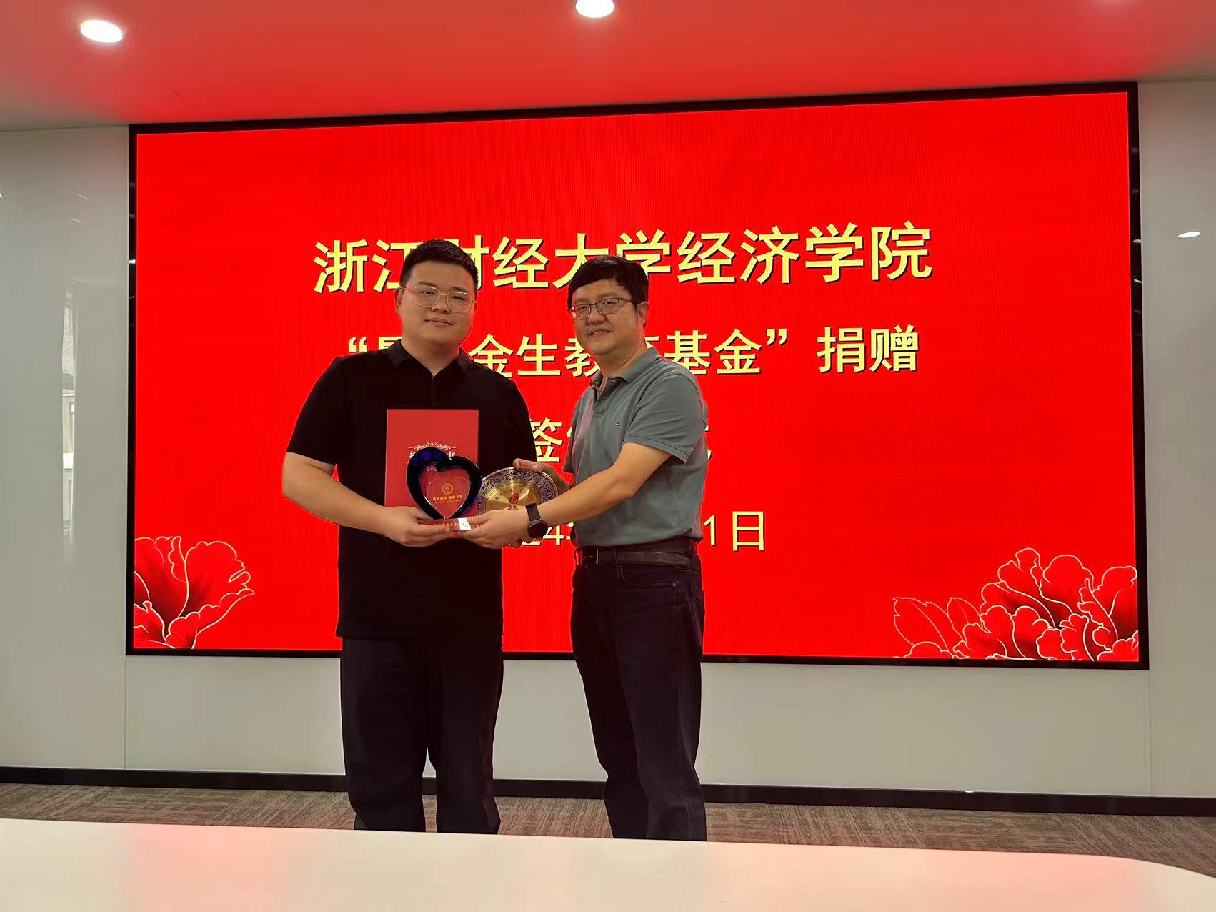 捐赠签约仪式上,王炀校友、吴玻主任、罗俊院长共同签署了捐赠协议。党委书记徐奇伟接受了王炀校友捐赠支票,徐奇伟书记为王炀校友颁发了捐赠证书和纪念杯。
