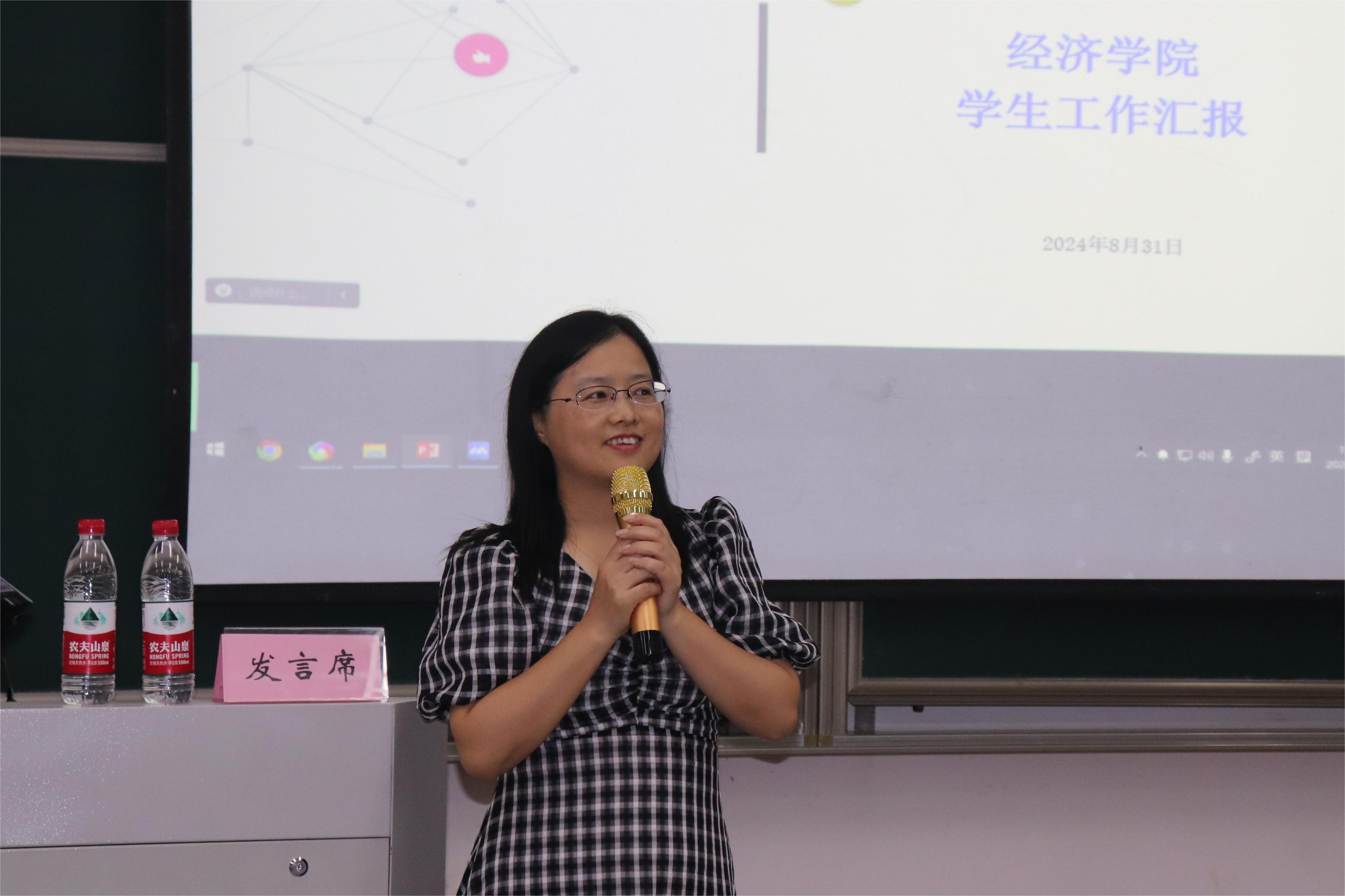 高质量论文、学科竞赛奖励、科研项目训练情况。学院副院长邓晓军老师介绍了2024级教学工作并从专业设置背景、专业特色优势、培养方案解读、选拔工作安排等多角度介绍了经济学拔尖学生培养基地班。学院党委副书记徐丽玲介绍了学院近五年升学就业情况、学院学业等困难学生情况、在校期间学生安全管理情况以及和学生家长介绍了学院新生班主任、辅导员。