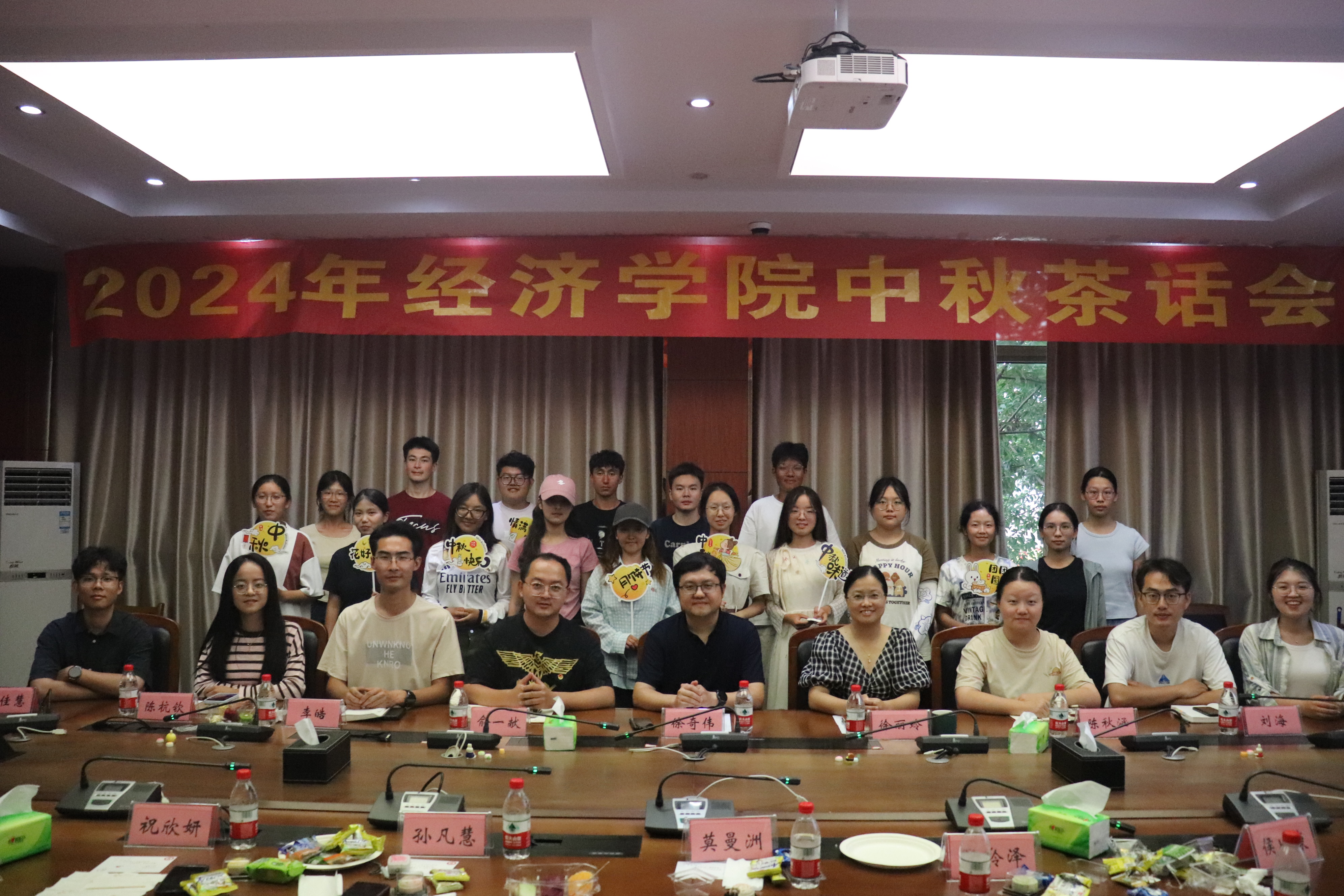 9月14日下午,学院在210会议室举办2024级新生中秋茶话会。学院党委书记徐奇伟、党委副书记徐丽玲、副院长王岭、副院长邓晓军、副院长李顺毅及全体辅导员与新生代表欢聚一堂、共话中秋。学院领导向同学们送上中秋祝福、关心大家入学以来适应情况,各位新生畅所欲言,分享初入大学校园的憧憬与期待。此次茶话会代表的是关怀,是心意,更是团圆。