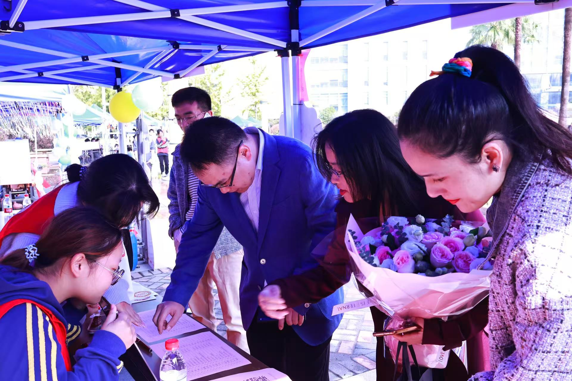 党委副书记徐丽玲,14届国贸1班王炀、寿苔努、陈家俊等校友参加揭牌仪式。仪式由成人直播