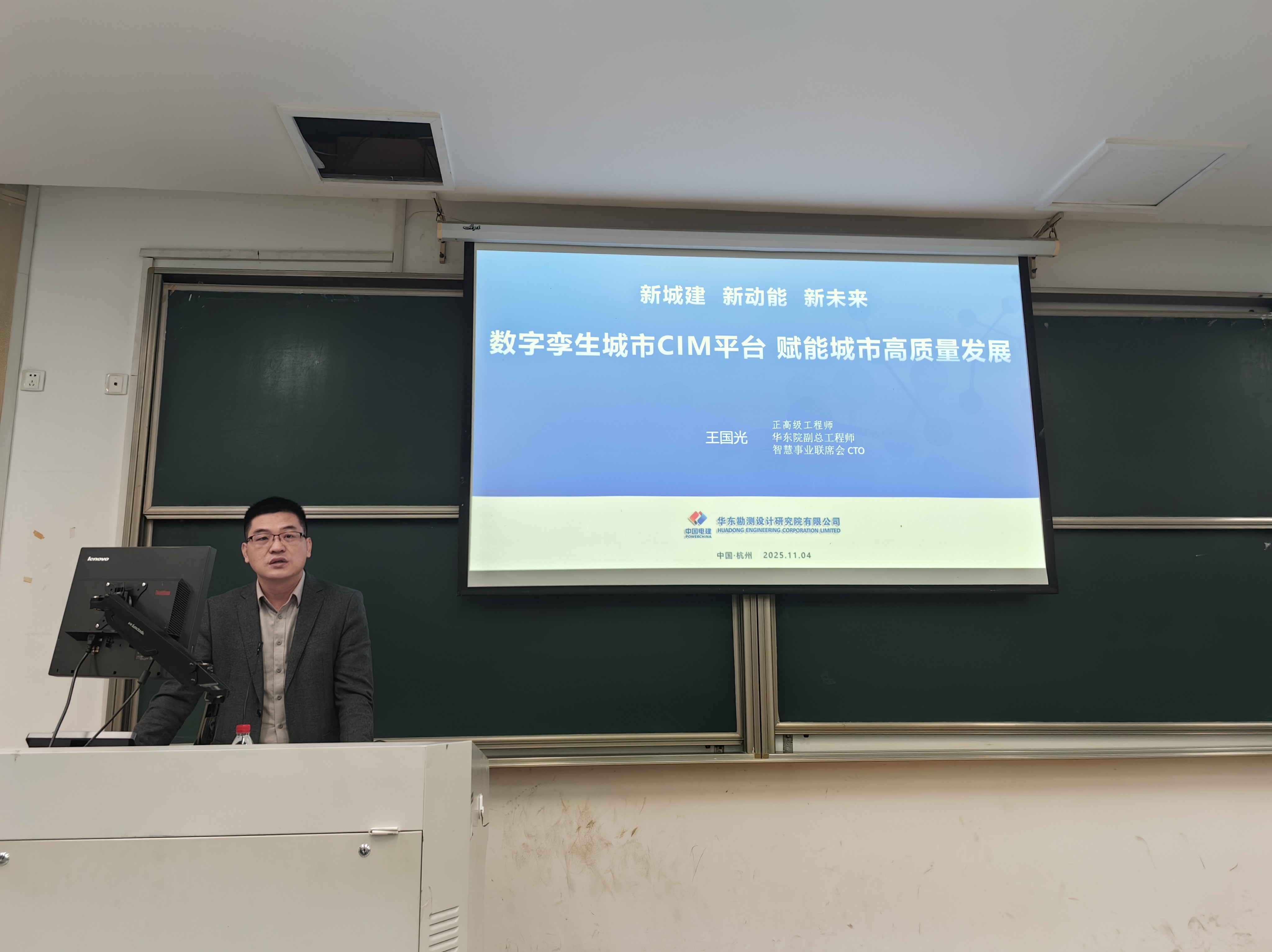 成功举办“数字经济·知行讲坛”。本次讲坛特邀华东勘测设计研究院副总工程师王国光教授级高级工程师,为学院师生带来“数字孪生城市CIM平台赋能城市高质量发展”专题报告。学院教师代表、部分基地班与经济学专业本科生,以及数字经济专业本科和硕士全体学生参加了本次活动。罗俊院长代表学院向王国光总工颁发了研究生社会导师证书。