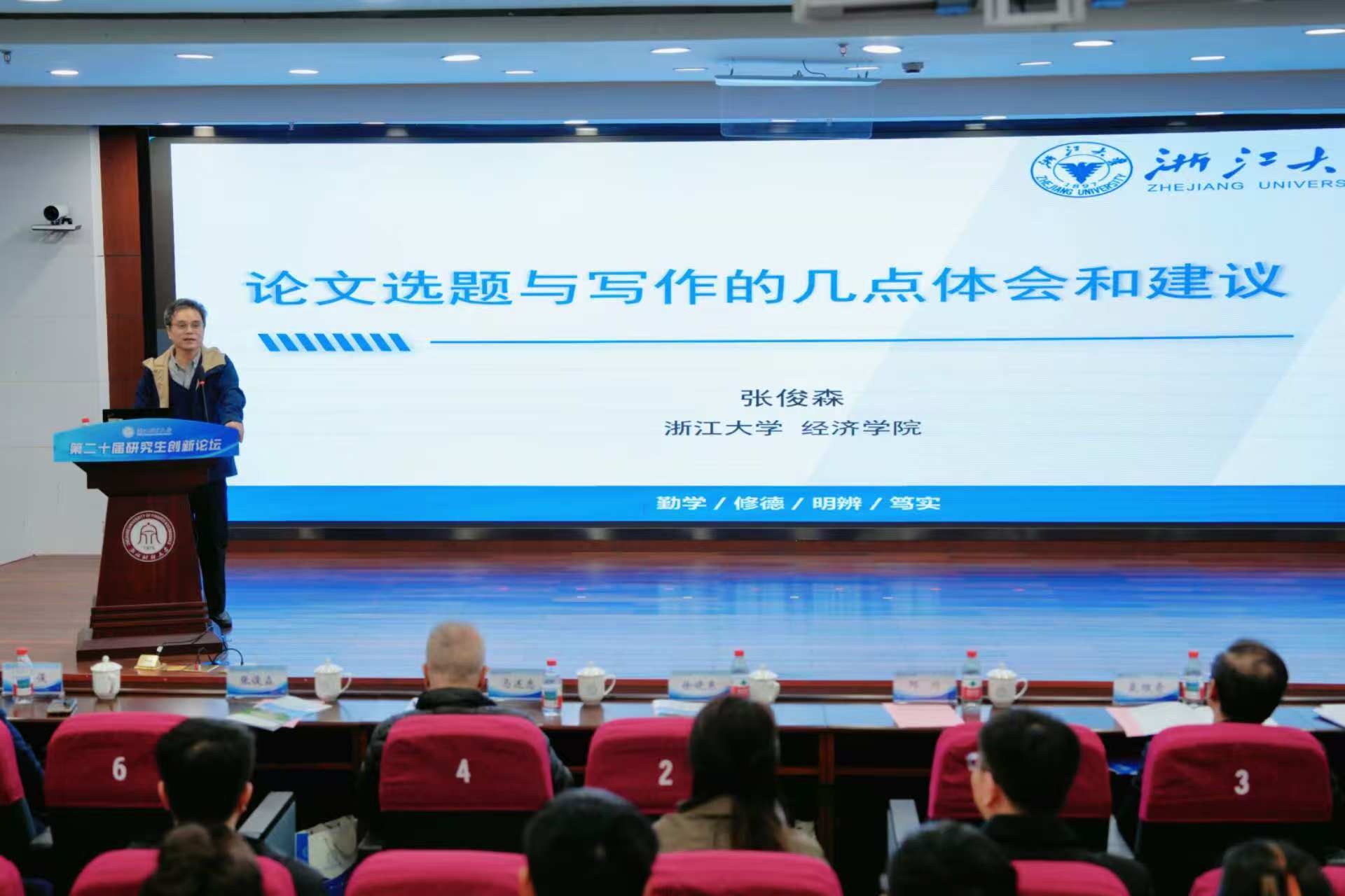 邀请的浙江大学张俊森教授与马述忠教授分别围绕《论文选题与写作的几点体会和建议》《海外仓对中国跨境电商出口的影响》作经济学专题报告。