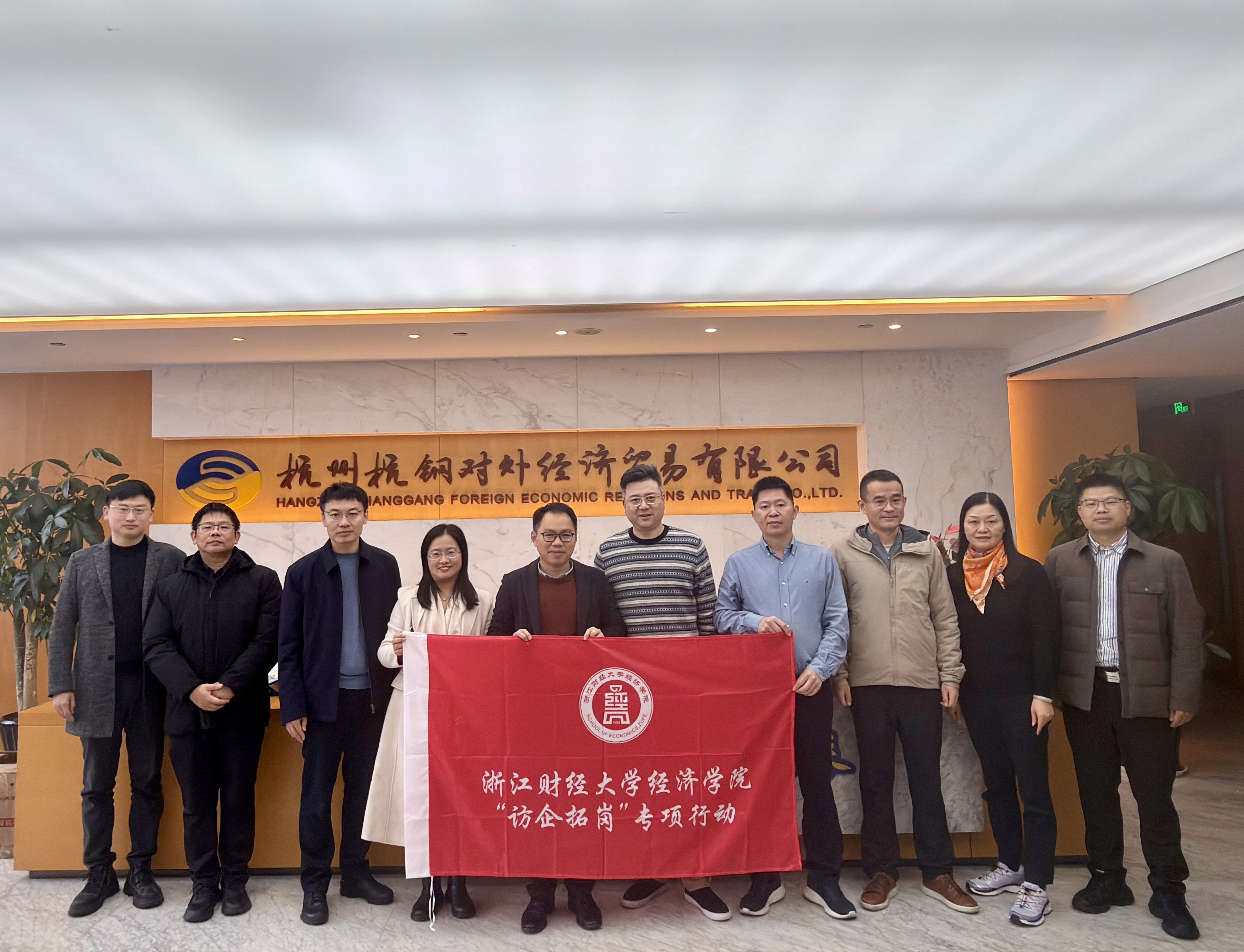 为推动学院产教融合和学生高质量就业,12月4日,学院院长罗俊、党委副书记徐丽玲、副院长王岭、副院长邓晓军、国际贸易专业负责人吴宏、国际贸易系主任冯阔等一行人赴浙江农村商业联合银行股份有限公司、杭州杭钢对外经济贸易有限公司开展调研交流。