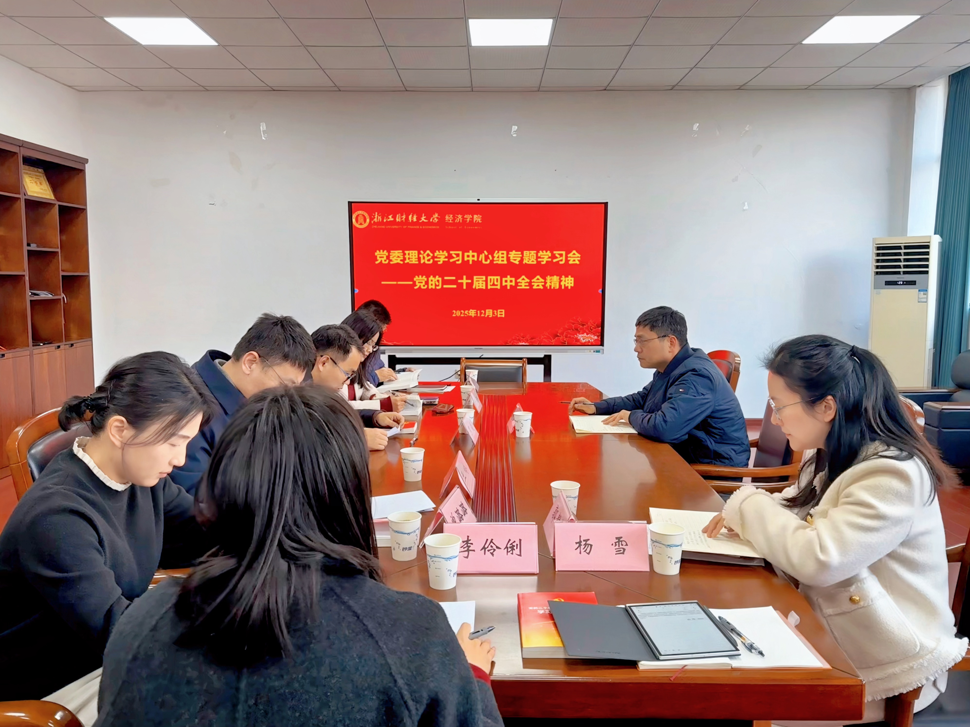 12月3日,成人直播 党委召开理论学习中心组学习会,专题学习贯彻党的二十届四中全会精神。校党委委员、副校长何贤杰到会巡听旁听。会议由成人直播 院长、党委副书记罗俊主持,学院党委理论学习中心组全体成员参加学习。