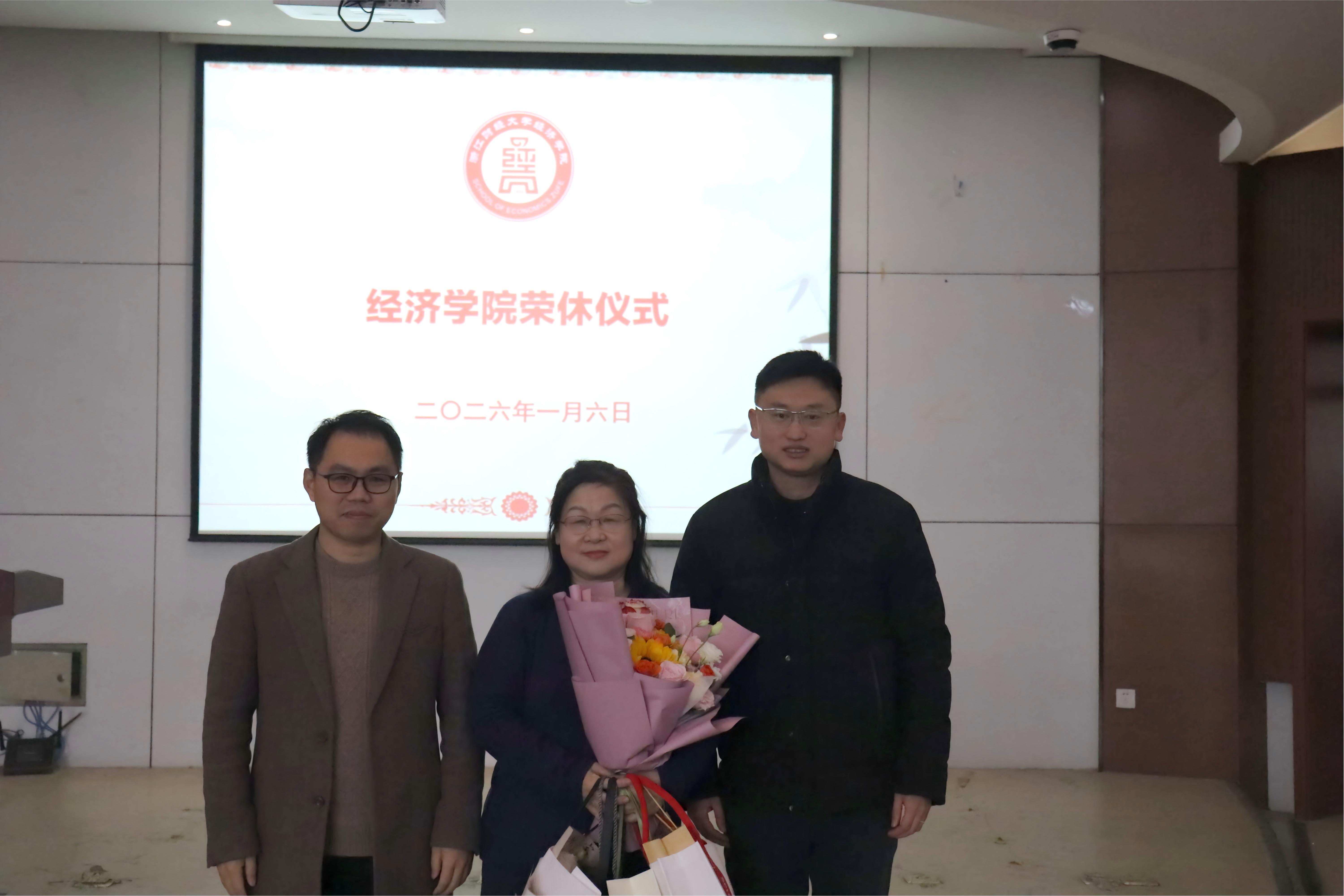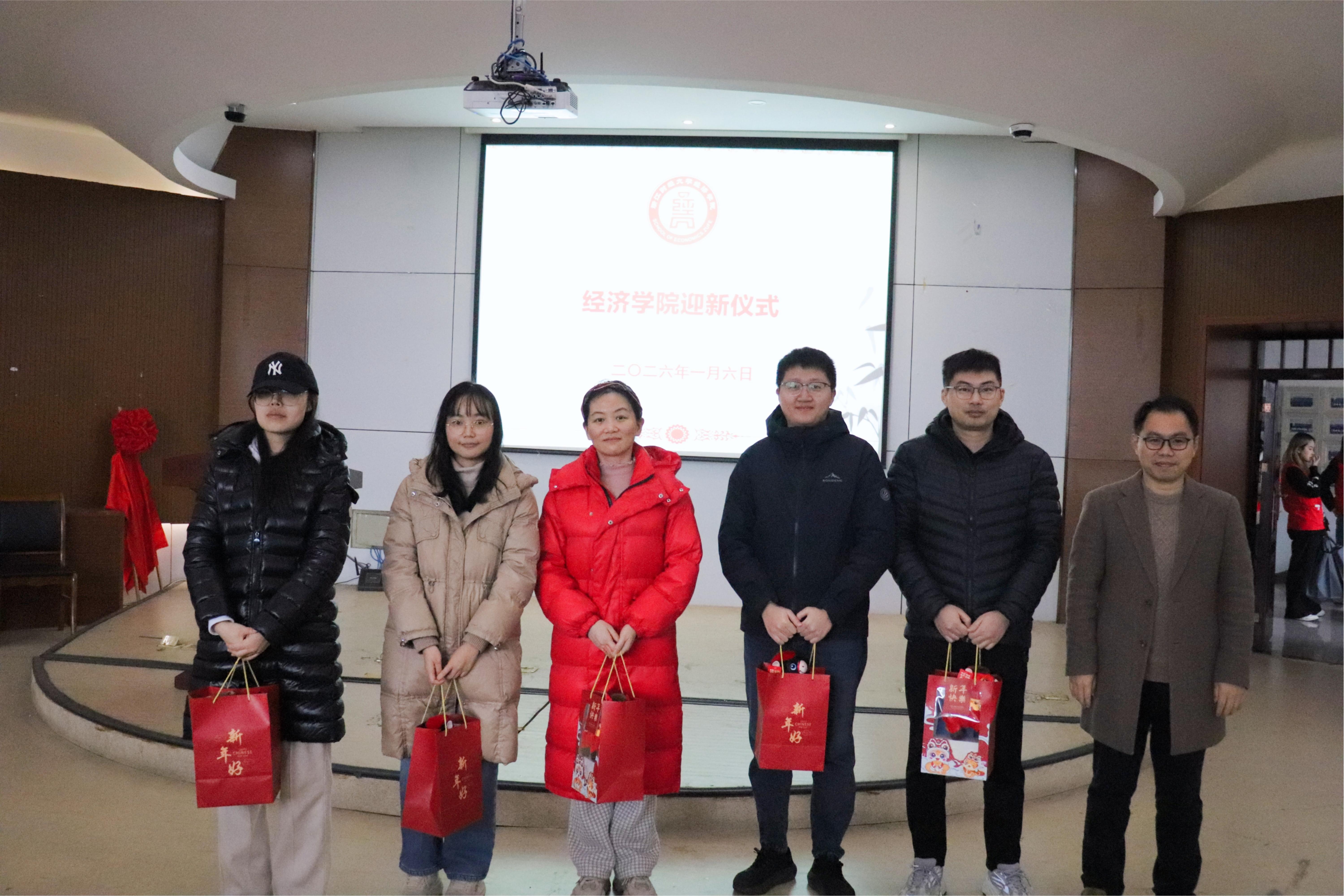荣休仪式后,学院为5位25年新进教职工送上经济大家庭的热烈欢迎。学院领导对新教职工的加入表示诚挚祝贺,表示新教职工是学院发展的新鲜血液与重要力量,希望大家能尽快转变角色、立足岗位,在教学科研中勇于探索、在育人实践中深耕不辍,与学院携手共进、共同成长。
