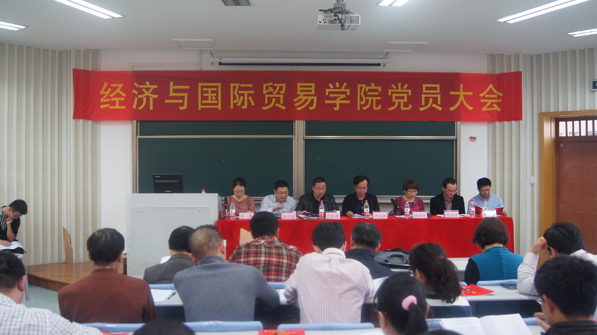 经济与国际贸易学院在6号楼111教室组织召开了党员大会。副校长黄建新,组织部段雪辉,经贸学院领导班子成员及学院全体师生党员参加了这次大会,会议由党总支副书记叶秀主持。