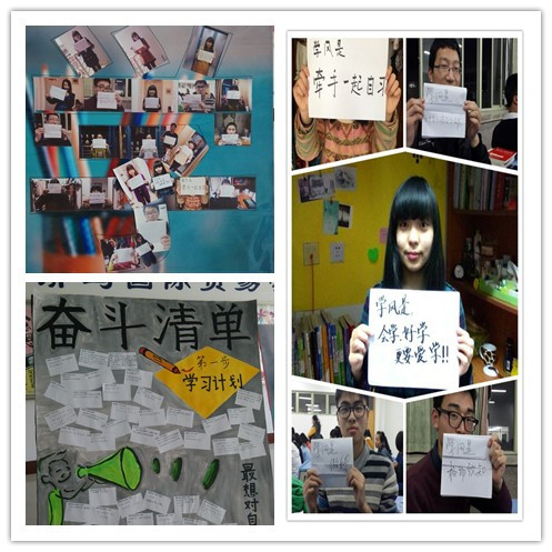 走进经济与国际贸易学院楼,首先映入眼帘的是一排学生自制的以“学风”为主题的宣传展示海报。3月份是经济与国际贸易学院的学风建设月,学生围绕这一主题开展了如成绩分析会、无手机课堂、奋斗清单、老生新生Day Day Up等形式多样的活动。