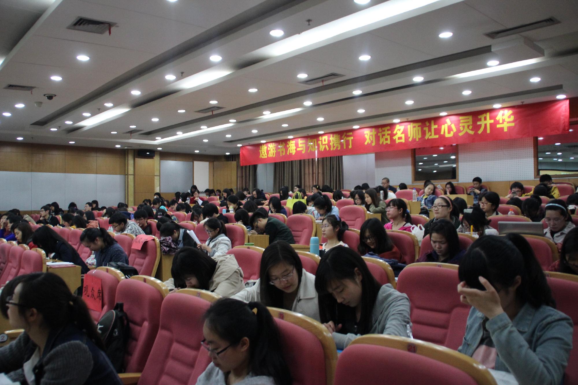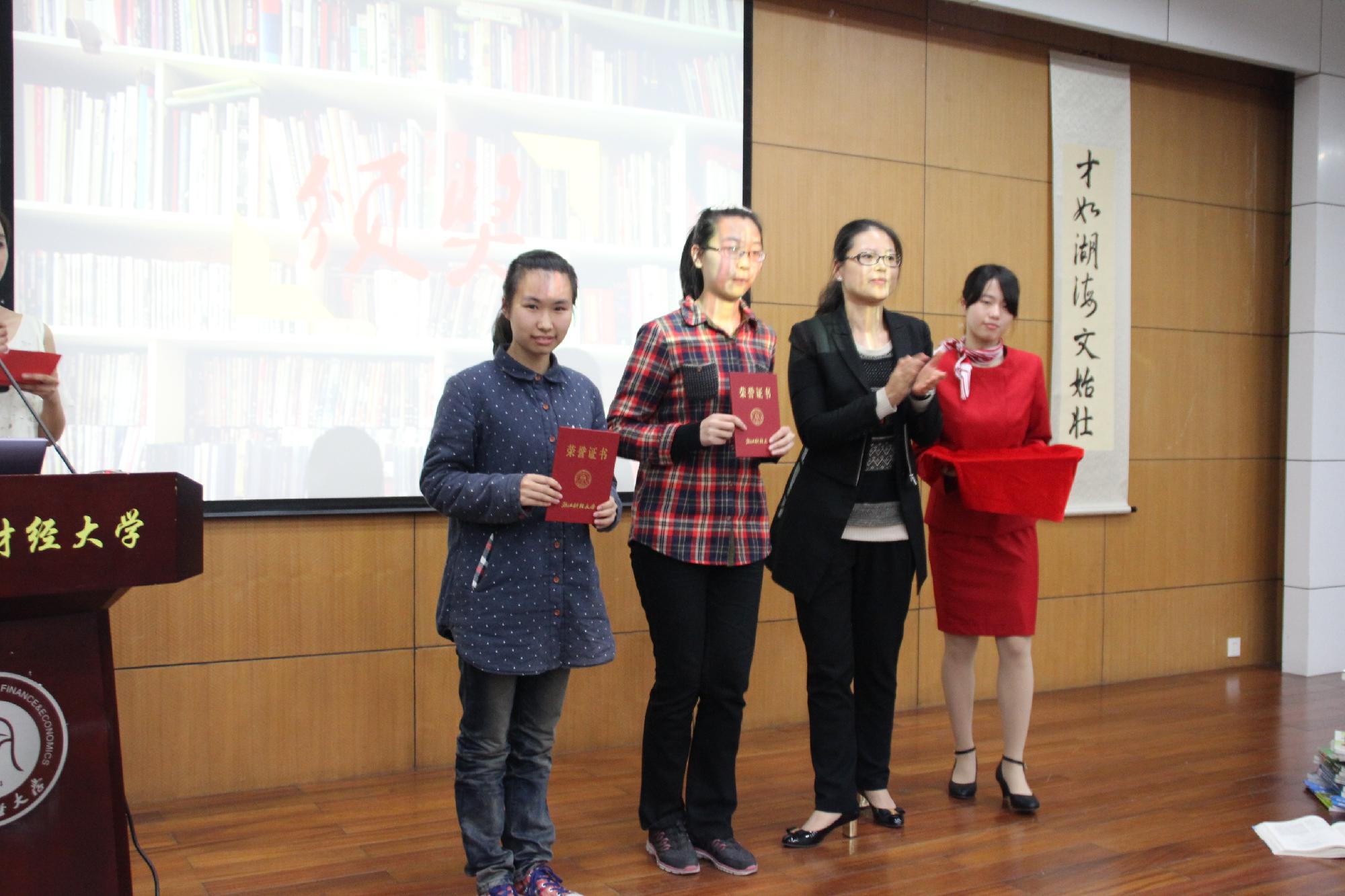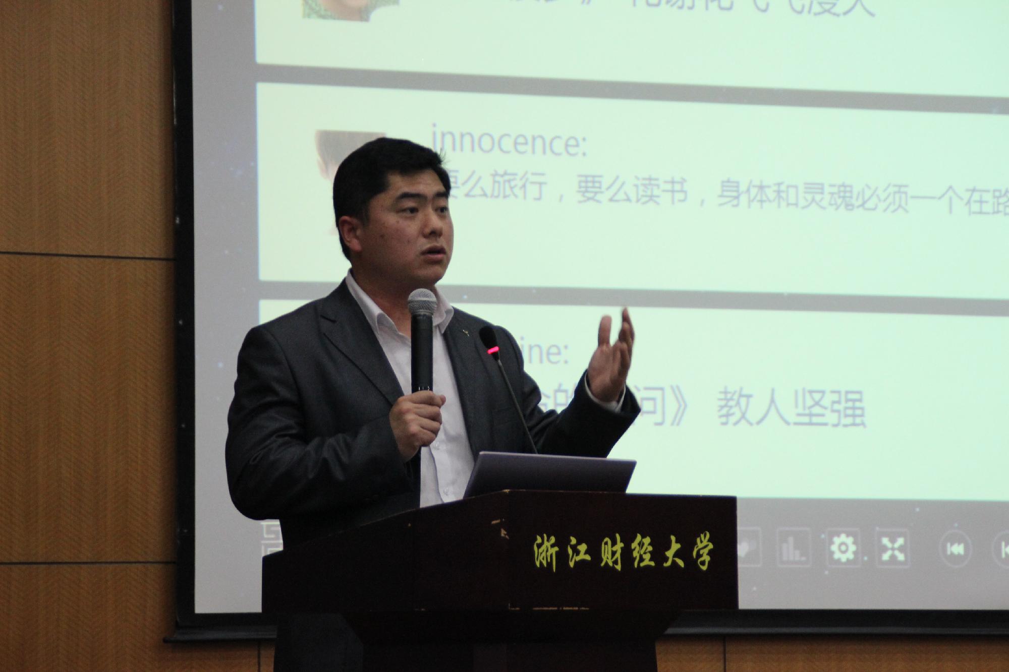 活动首先由三位学生代表分别从不同的角度分享了他们的读书经验。12会计1班的李雅欣为大家介绍了略读的步骤以及如何在阅读时保持清醒;12金融2班的任宏杰则建议大家在阅读时要注重勤记忆,常反思,多总结;12国贸2班的俞丽甜则以《推手》一书为载体,强调了在阅读时要寻找乐趣、看点,善于质疑、否定,打破思维墙。三位同学用他们的读书感悟告诉我们生有涯,知无涯,唯有与书为伴,才能成为真正的读书人。
