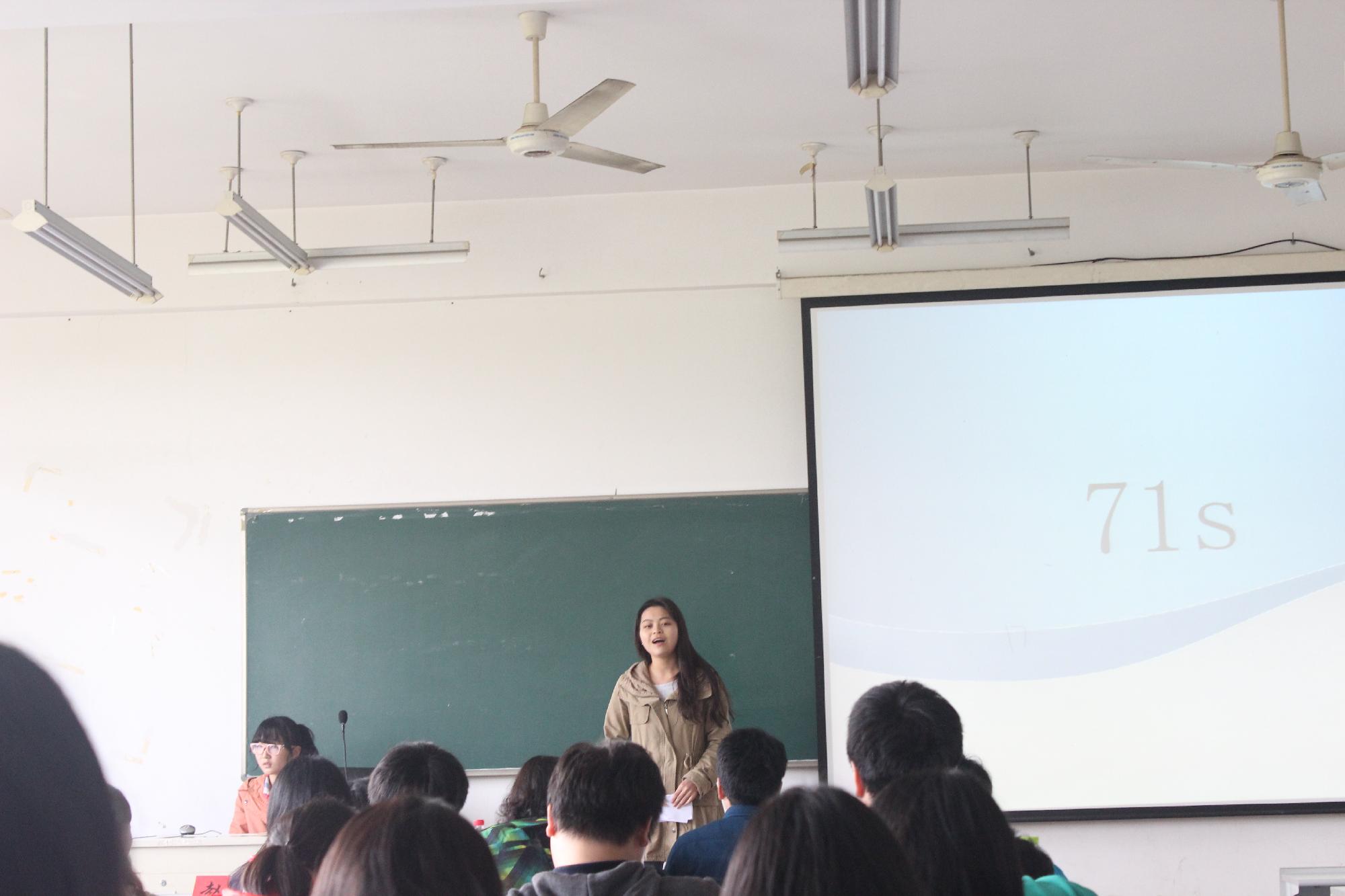比赛分为两大部分,第一轮由参赛选手根据给定题目进行3分钟的发言,主要考查选手们的英语口语及英语写作能力。第二轮由选手们随机抽取题目,并根据题目进行2分钟的即兴演讲,以此考验选手的临场应变能力和英语语言的积累程度。比赛过程中,选手们各显其能,声音时而高亢洪亮,舒缓轻柔,感情表达的淋漓尽致,博得台下阵阵掌声。最后,12国贸2班的裘冰清和12国贸3班的陶房钰脱颖而出,将代表成人直播
