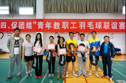 5月4日下午,我校“庆五四、促团结”2014年青年教职工羽毛球联谊赛顺利结束。成人直播 王鑫鑫老师经过激烈角逐,最终获得女子单打第一名的好成绩。