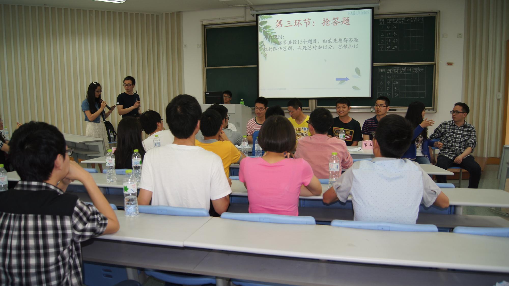 2014年5月16日下午2点,一场智慧与欢乐并存的财经热点知识竞赛在经贸学院楼111教室隆重举行。此次知识竞赛由经贸学院研究生分会和研究生党支部承办,旨在提高研究生综合素质,丰富研究生业余生活。