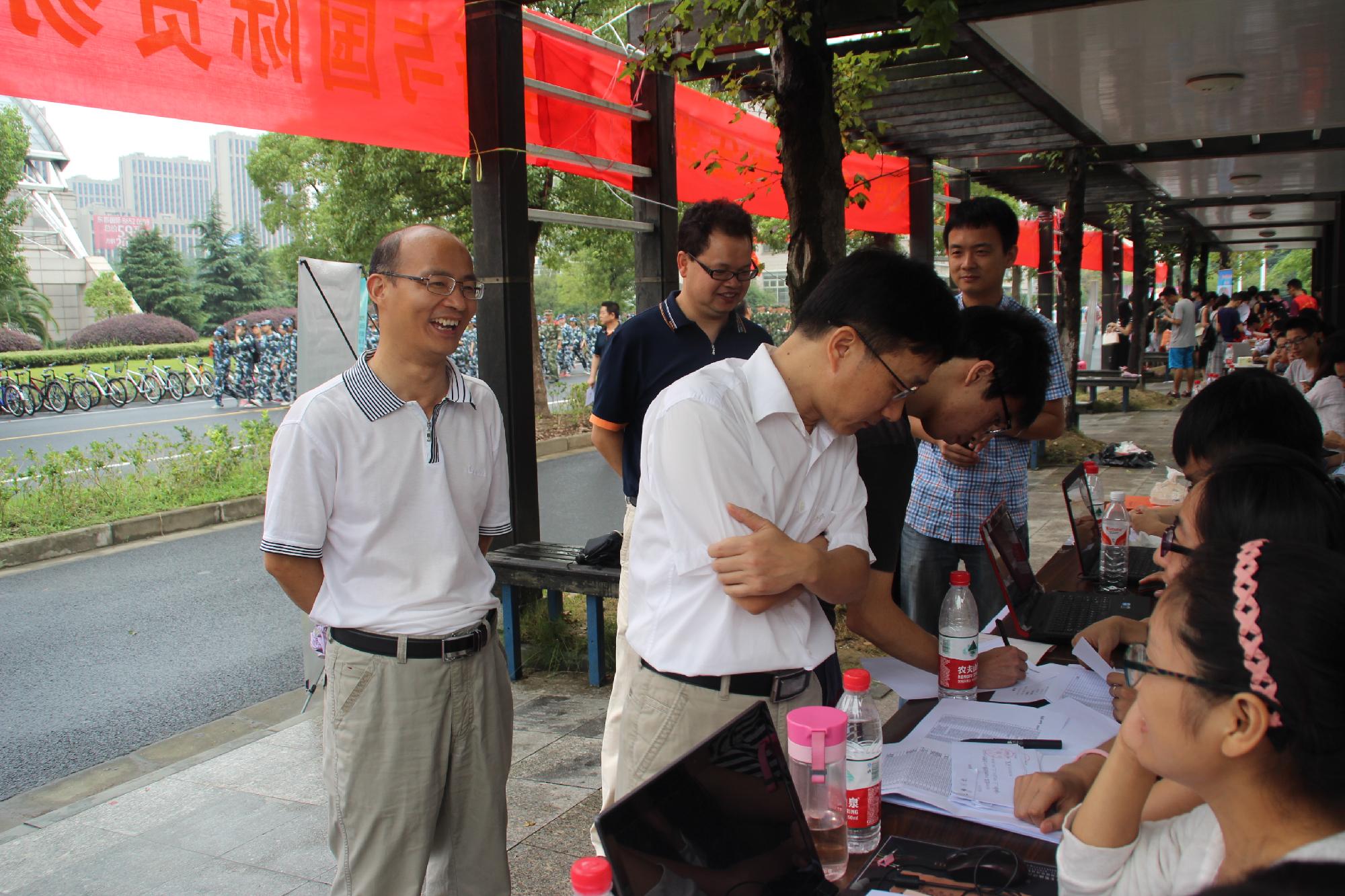上午7:30,迎新志愿者已经早早到场,尽管天空下起小雨,迎新的热情却丝毫不减,反而弥漫着温馨暖人的氛围。迎新现场,卢新波副校长深切关注新生报到情况,亲切慰问学院迎新工作人员,一再强调“迎新工作要以心迎新,要以饱满的热情做好志愿服务,为学院、学校留下美好的印象”。