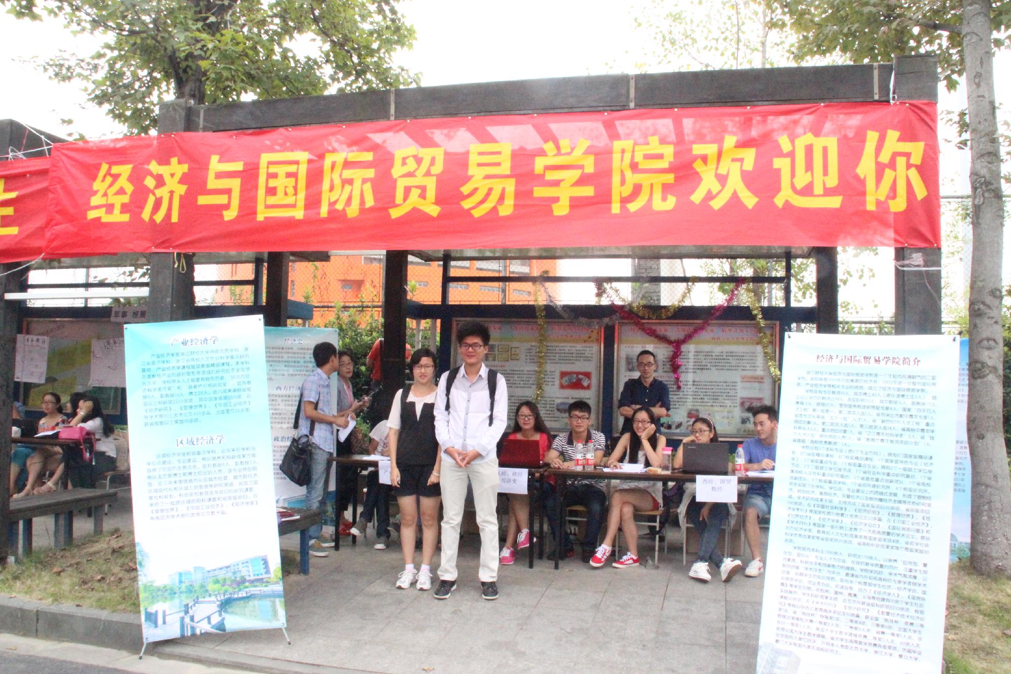 在西门文化长廊全面开展了2014级经济与国际贸易学院研究生的迎新工作。
