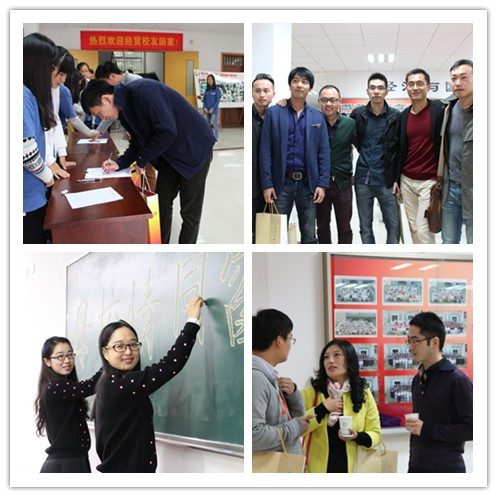 昔日的青涩少年各赴天涯、打拼事业,再见已是国之栋梁,再次聚首,莫不心潮澎湃,激动万分。大会之后,校友们与在校师生举行了恳谈会,气氛热烈温馨感人,校友们纷纷感叹这次返校让他们感受到了回家的温暖。看到学院精心布置的校友角和图片展后,大家也都随着一张张照片开始慢慢回味曾经在校生活的点点滴滴。在签名墙前,校友们纷纷写下了各自对学校和学院的真挚祝福,对学院的最新发展动态也表示出了热切的关心之意,表达了对母校的感激之情,并表示要为建设更美好的财大贡献自己的一份力量。