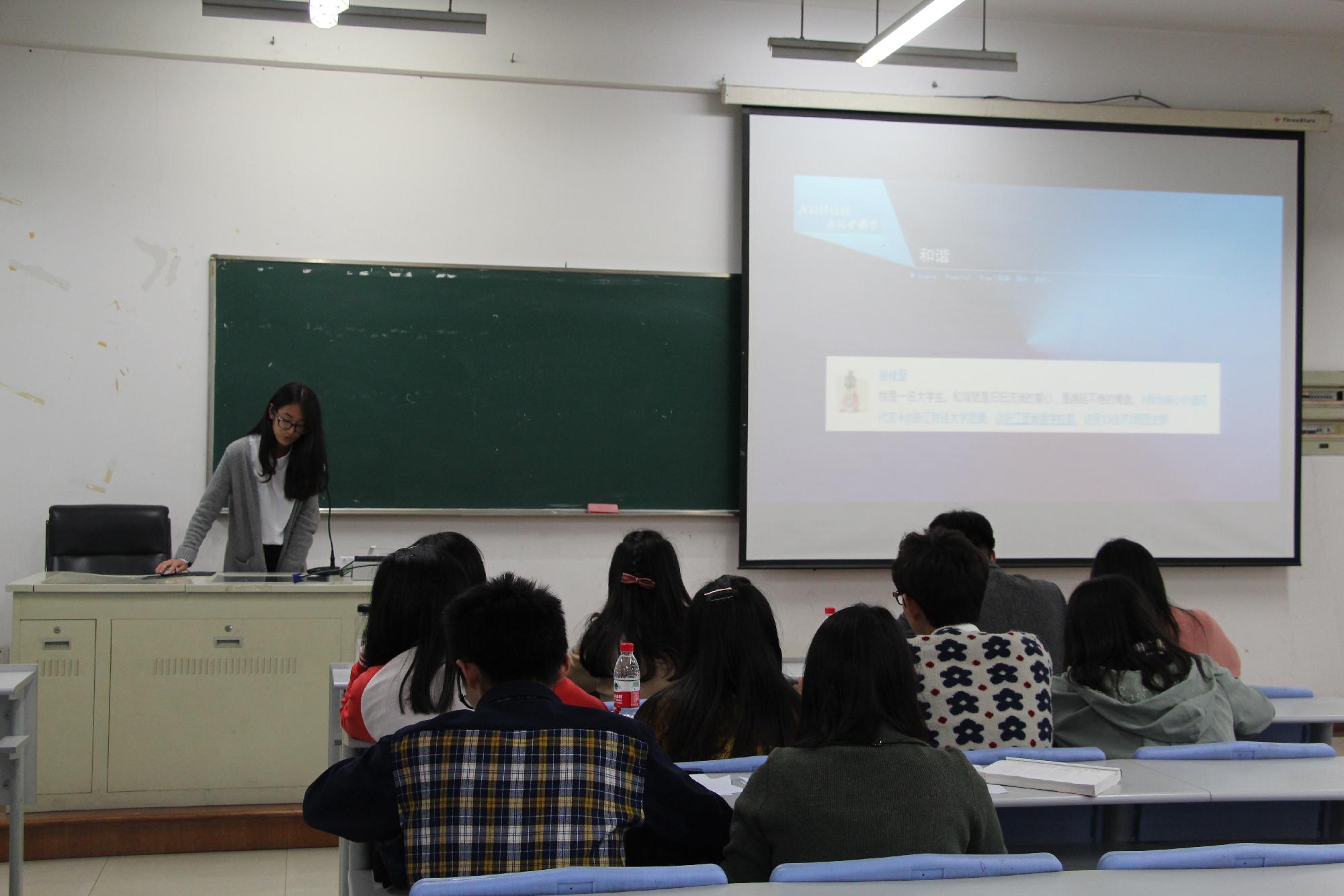 2014年11月11日下午3:00,由经贸学院团委举办的“我的价值观,我的中国梦”主题团日活动总结评比大会在学院楼105举行。院团委书记汪风易,辅导员赵聪、谭立娟出席了此次活动。