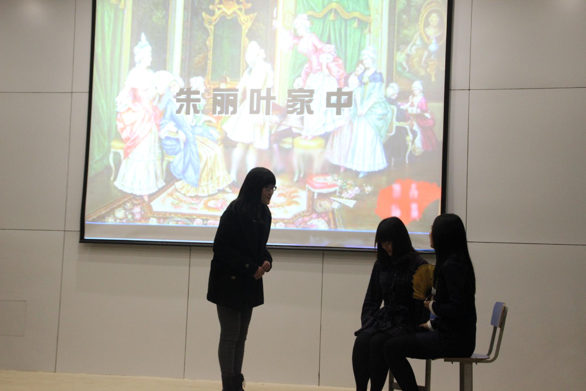 此次周末小剧场共有5期,前四期由各班挑选演员、剧本进行表演,最后一期则为优秀演员的汇演。截止12月7日,小剧场已成功举办3期。14经济2班的才子佳人们在寂静深秋上演史铁生与母亲的相濡以沫;14经济1班带我们穿越千年重演廉颇与蔺相如的恩怨情仇;14国经班的罗密欧与朱丽叶以生动丰富的表演讴歌了最伟大浪漫的爱情故事;14国贸3班的同学们则重现了黛玉初进贾府的情景,带我们再次领略红楼旧梦。在接下来的两期小剧场中,《简·爱》、《窦娥冤》、《项链》等经典剧目将纷纷登台亮相,更有优秀演员的联袂出演让人期待。