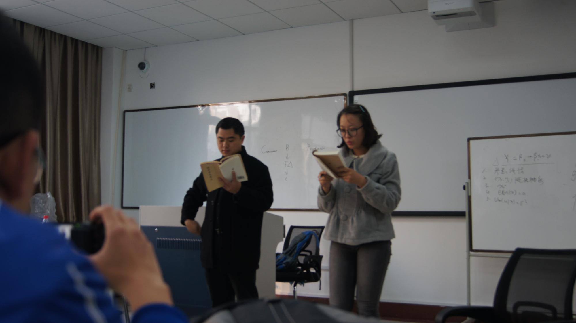 这个学期,6号学院楼104教室经常可以看到这样的场景:还未走进教室,就已经听到阵阵琅琅读书声,煞是悠扬。走进教室,看到老师和同学们都在读书,有时大家齐声诵读,有时个人在前领读,有时小组诵读... 但每次都必有一个人在,他就是李井奎老师。