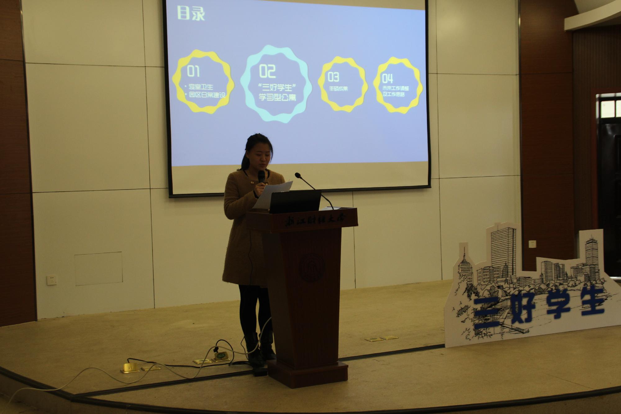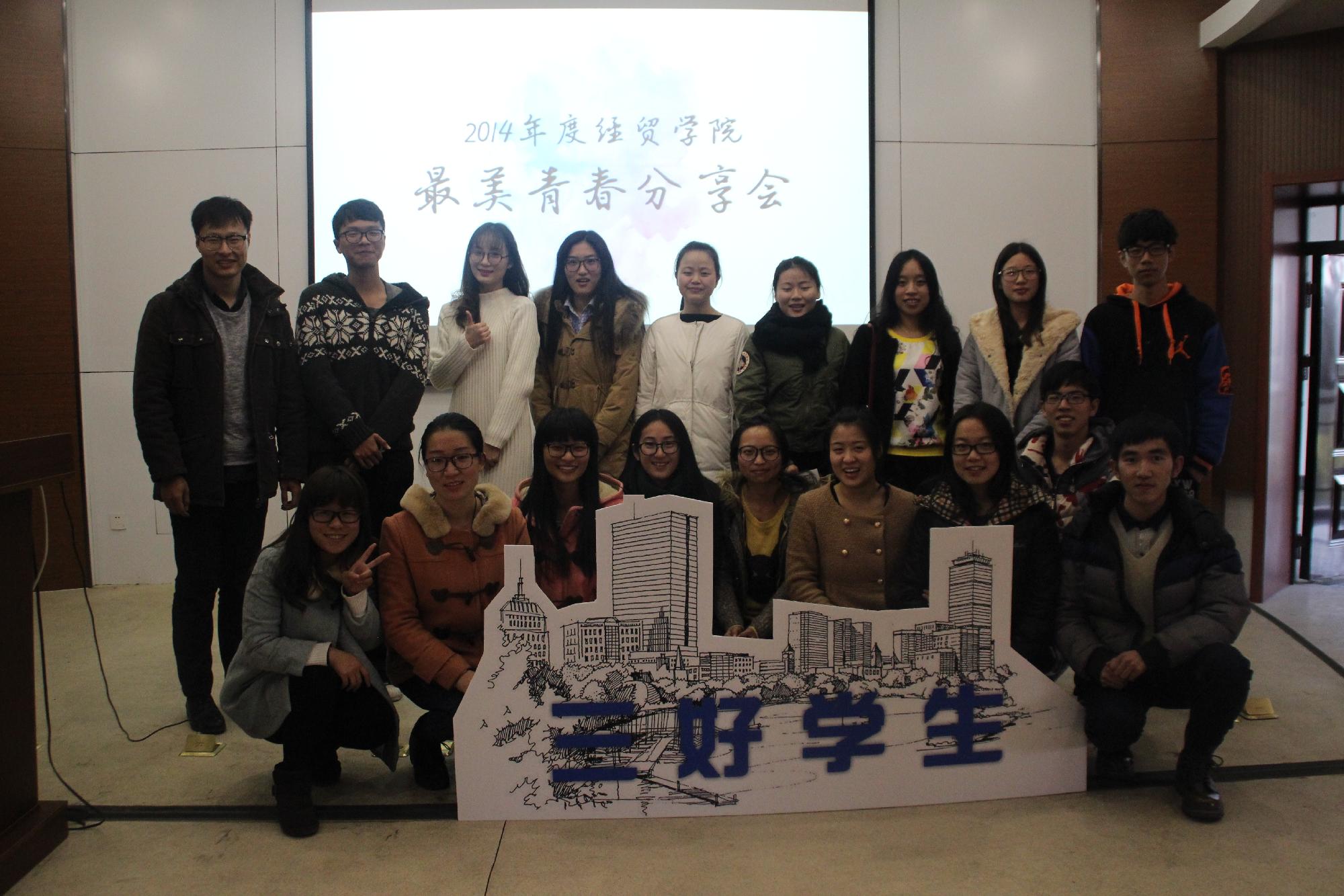 2014年12月23日下午,经济与国际贸易学院在学院楼219教室举行了“三好学生”学习型公寓建设阶段性成果报告暨最美青春分享会。校团委副书记吴翼泽,成人直播