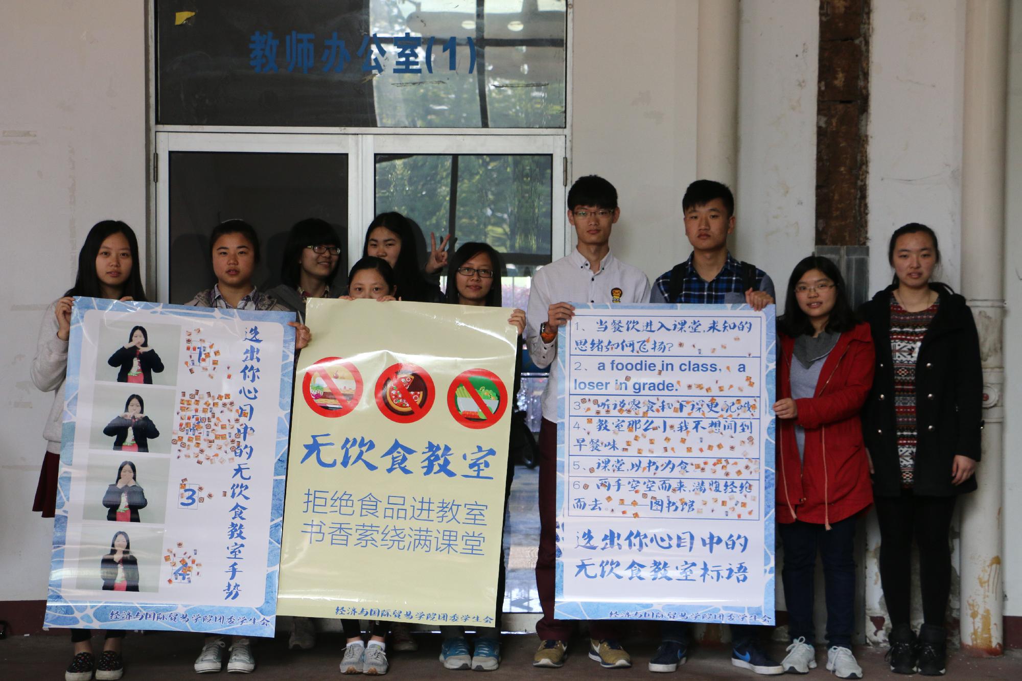 为营造良好整洁的学习氛围,近日,经济与国际贸易学院在全院范围内推出了“无饮食教室”活动。
