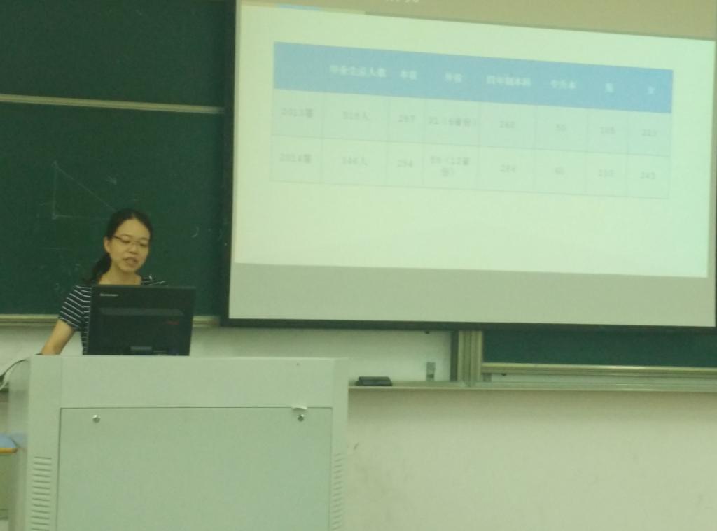 毕业生就业状况等几个方面,对12级学生做了系统的就业指导。她提醒广大毕业生既不要好高骛远,也不要妄自菲薄,要找准自己的定位,做好职前的自我提升,寻找合适自己的就业岗位。随后,陈秀琴老师介绍了12级学生在未来一年的时间内需要处理的各项毕业事宜,她特别叮嘱同学们要提高对毕业论文的重视,建议大家提早撰写。