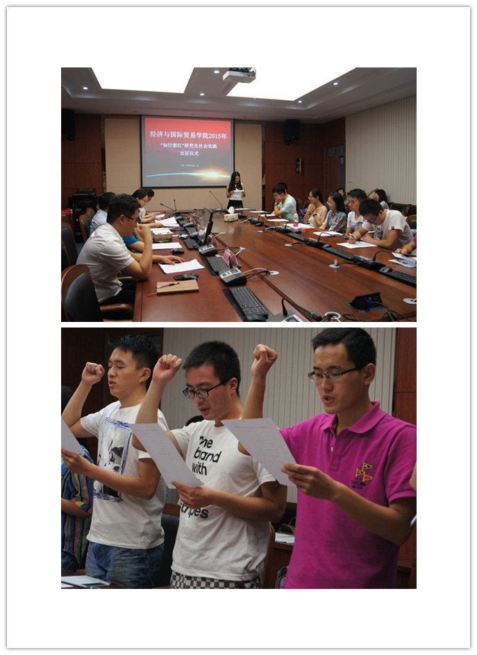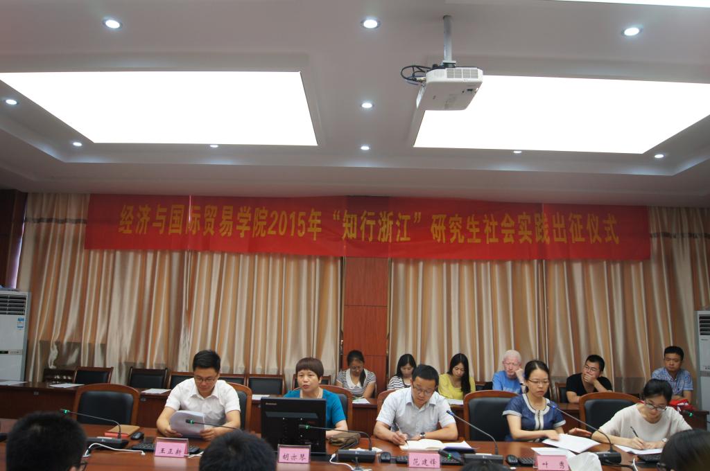 2015年“知行浙江”研究生社会实践出征仪式在学院楼210报告厅举行。会议由党总支副书记叶秀主持,院长胡亦琴、党总支书记范建锋、院长助理王正新、研究生辅导员陶恩情及全体实践队成员参加了出征仪式。