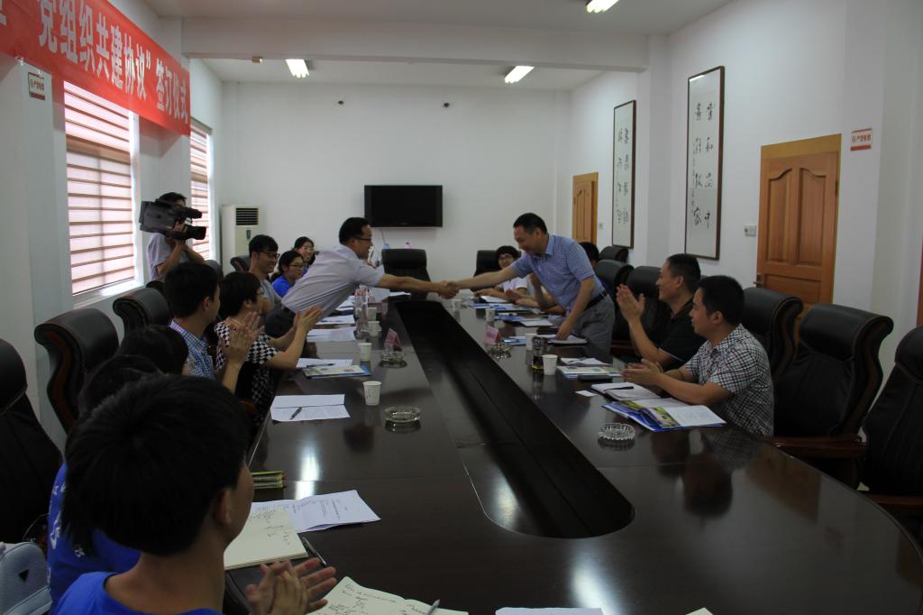 会上,横溪镇镇长蒋劲松和经贸学院院长胡亦琴分别介绍了本单位的基本情况,对双方的合作进行了展望。横溪镇党委书记吴建军与经济与国际贸易学院党总支书记范建锋充分肯定了基层组织合作共建的重要意义,并对未来乡村走访、企业调研、干部培训、政策咨询等多形式的共建活动寄予厚望,希望以此为契机发挥各自优势,相互学习借鉴,深入合作,实现共建共荣,共同进步。两位书记代表双方单位签署了共建协议,并举行了简单而隆重的实践单位揭牌仪式。随后与会人员互相交流了基层党建工作的经验和做法,并就下半年开展基层党组织结对共建有关工作进行了商谈,大家畅所欲言,气氛活跃,提出了许多宝贵的意见和建议。